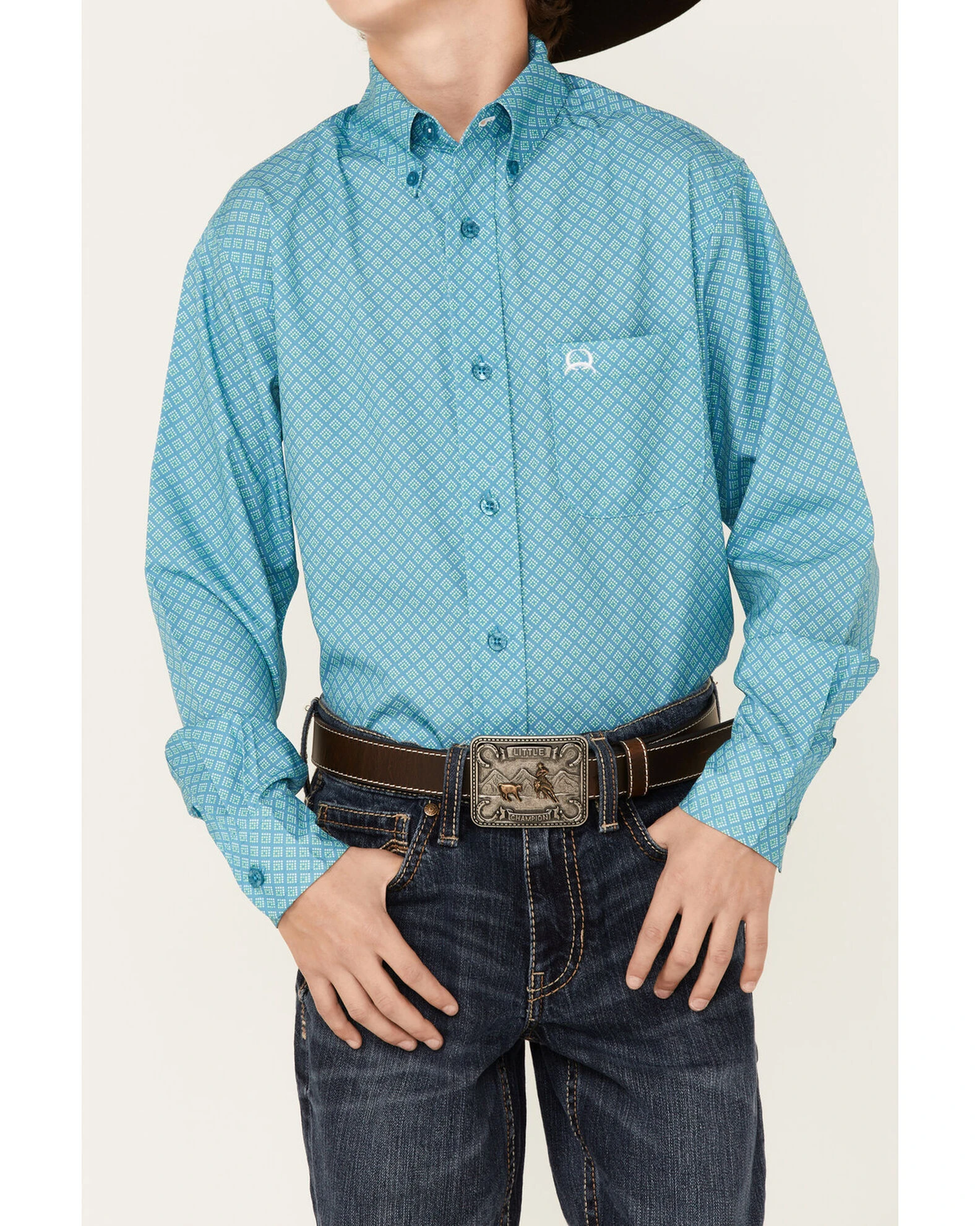 Cinch Boys’ ArenaFlex Print Long Sleeve Button-Down Shirt Blue