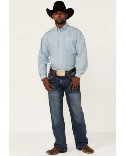 Cinch Boys’ Dotted Print Long Sleeve Button-Down Shirt Blue