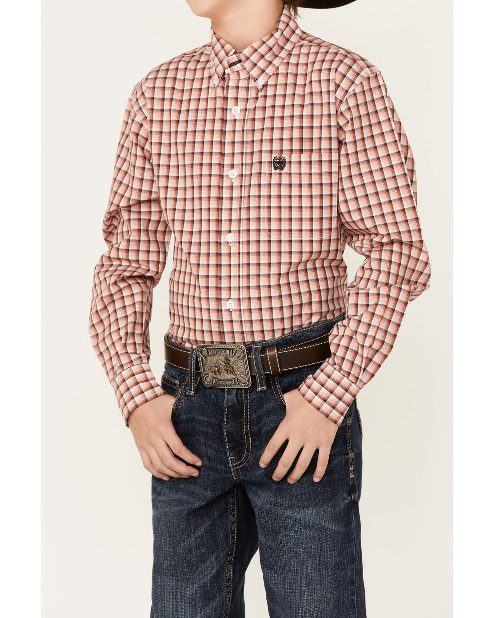 Cinch Boys’ Pink Plaid Long Sleeve Button-Down Western Shirt For Men’s