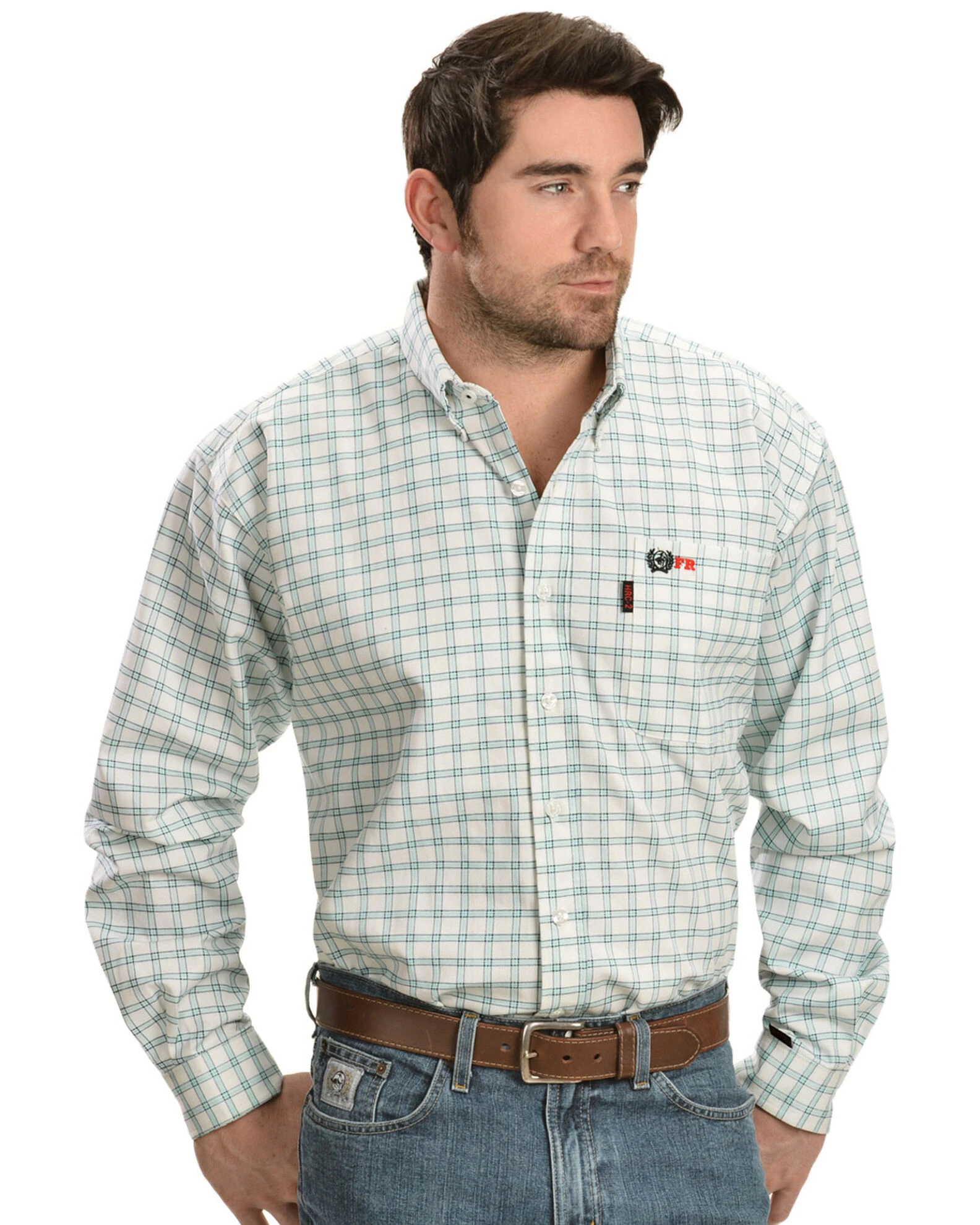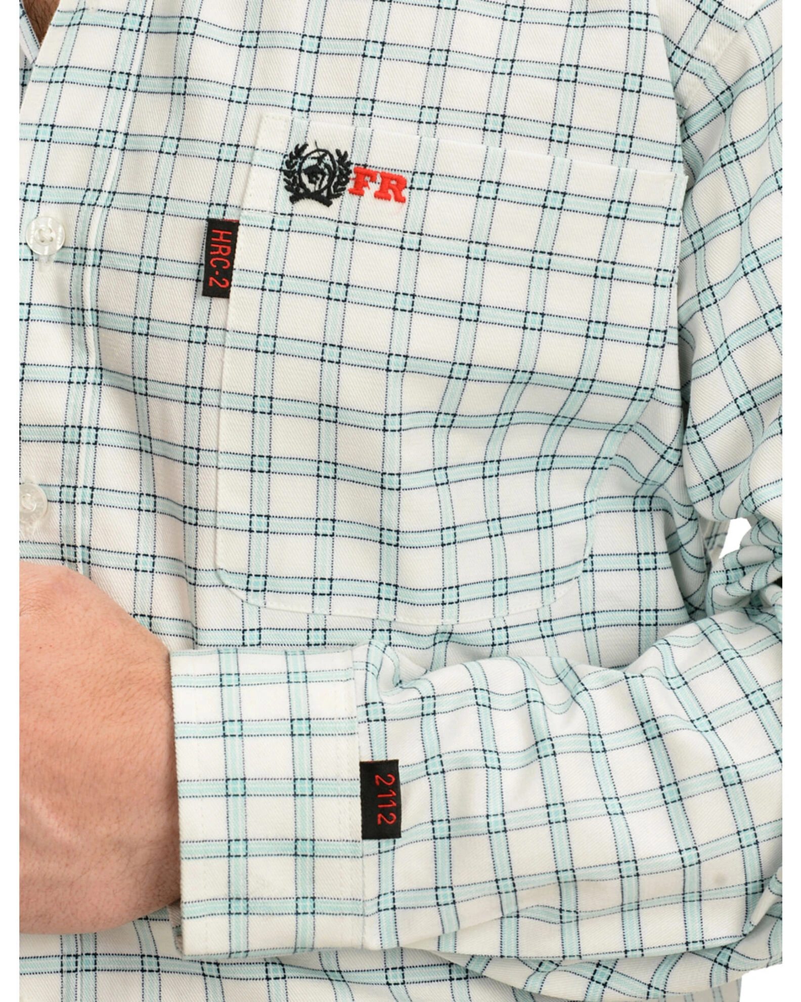 You can handle the hottest jobs with this shirt from Cinch. Made from 7.5-ounce, 100% cotton flame resistant long sleeve shirt from Cinch has the recognizable Cinch FR logo on the left chest. This handsome but rugged green and white plaid men’s work shirt meets HRC-2, ATPV 8.5, and 2112 standards. When you’re working, let Cinch help keep you safe and covered.