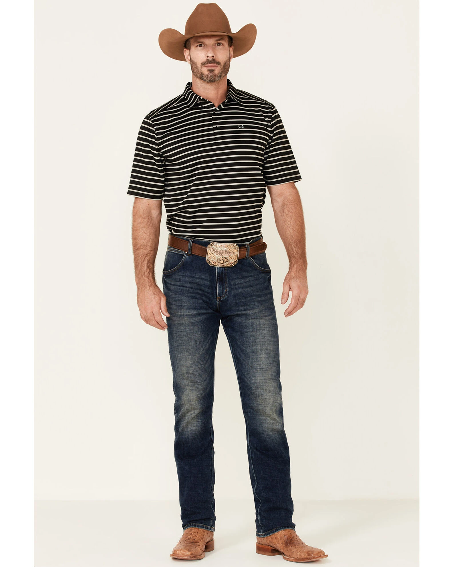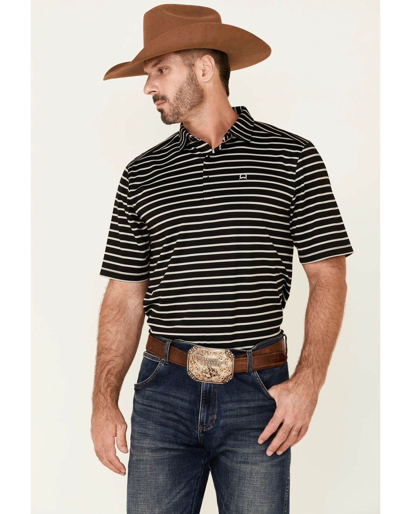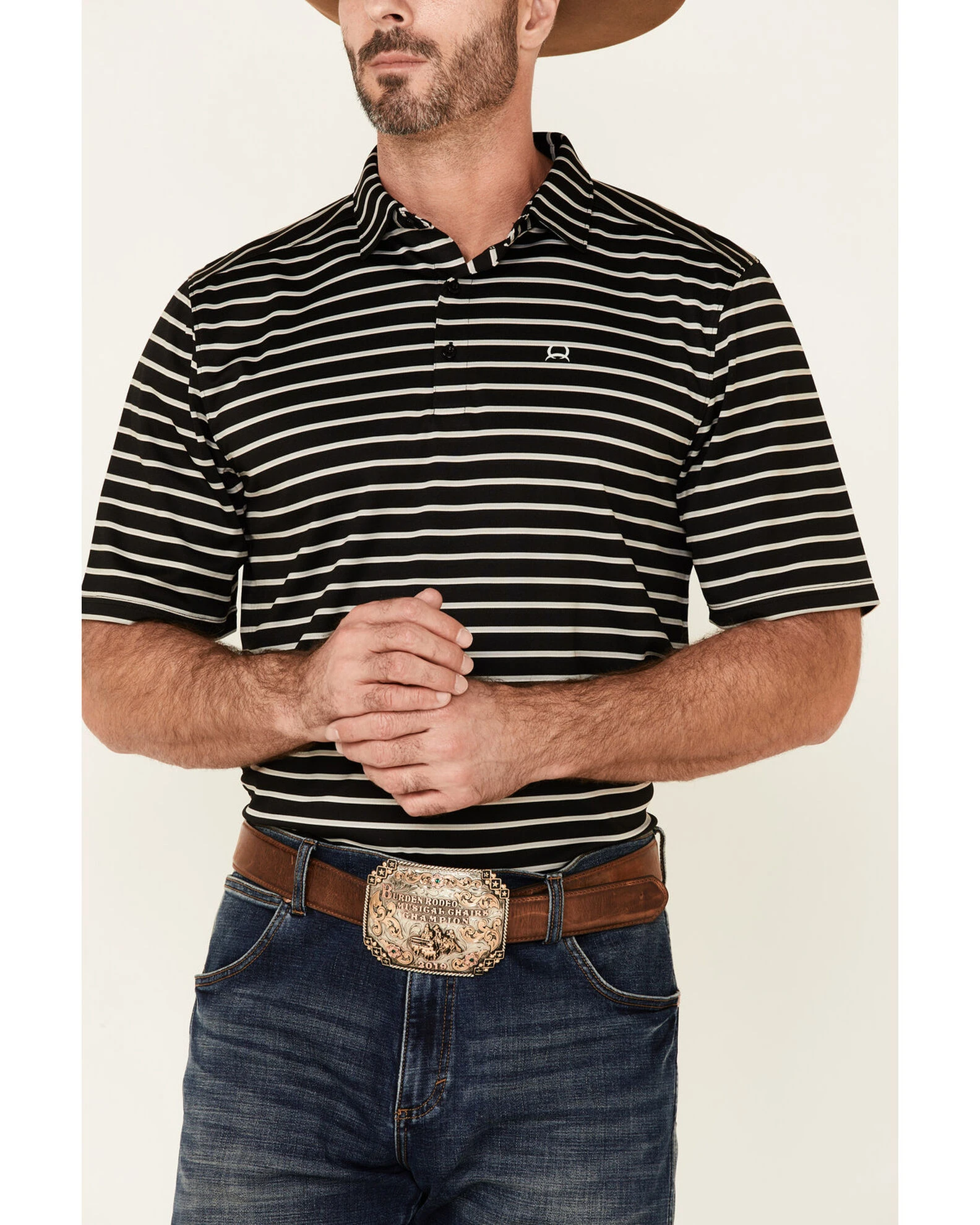 Cinch Men’s Arena Flex Black Striped Polo Shirt