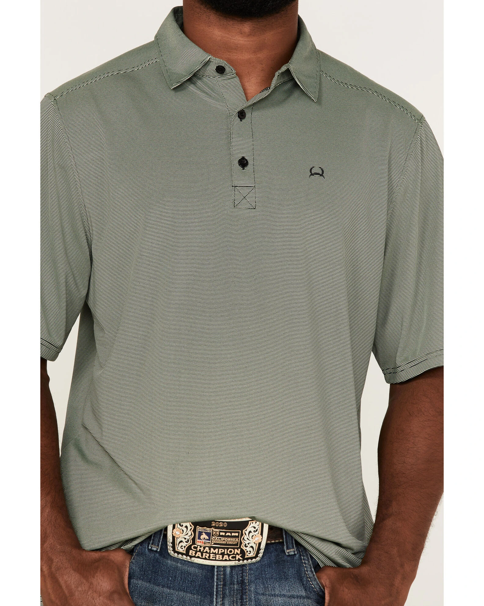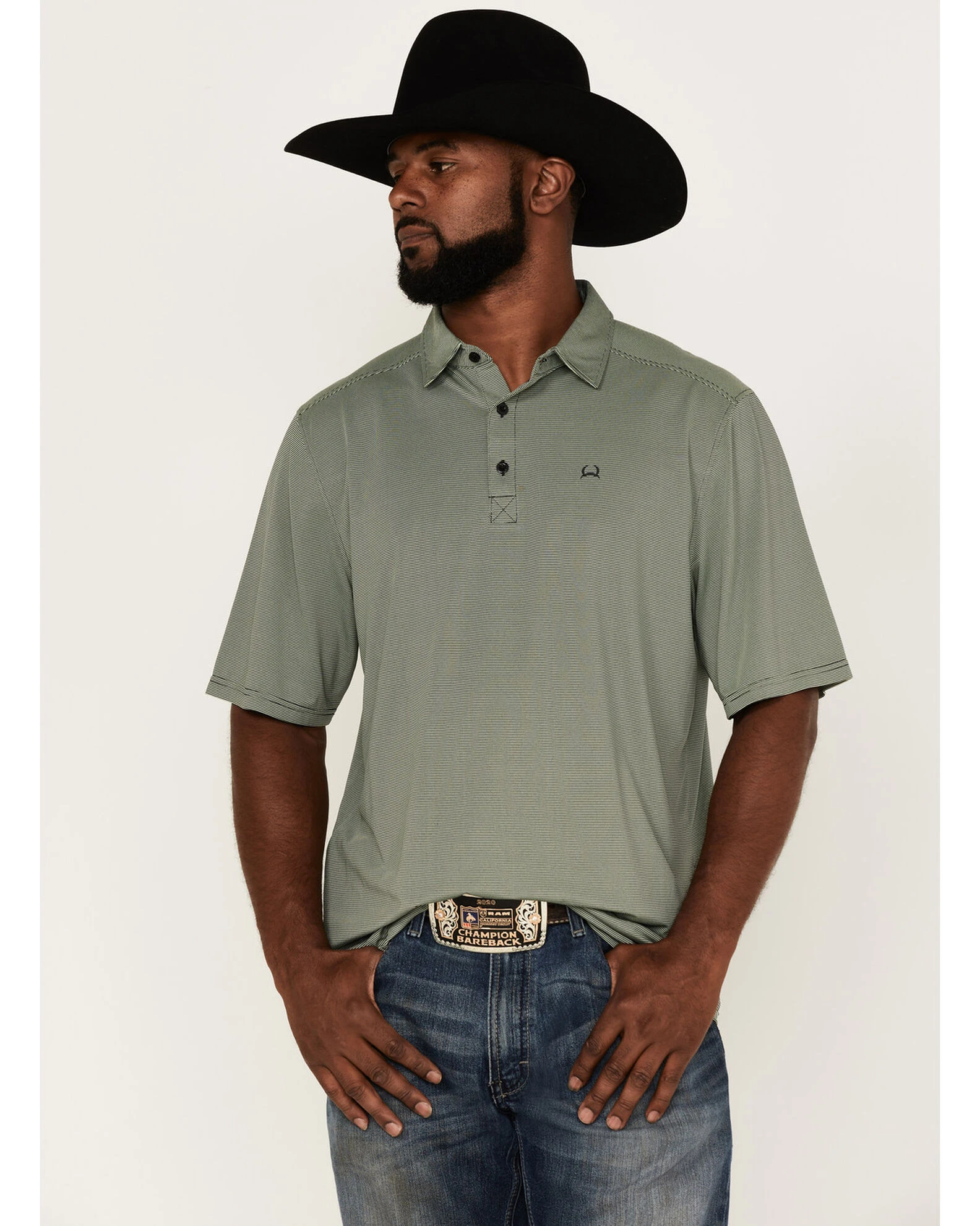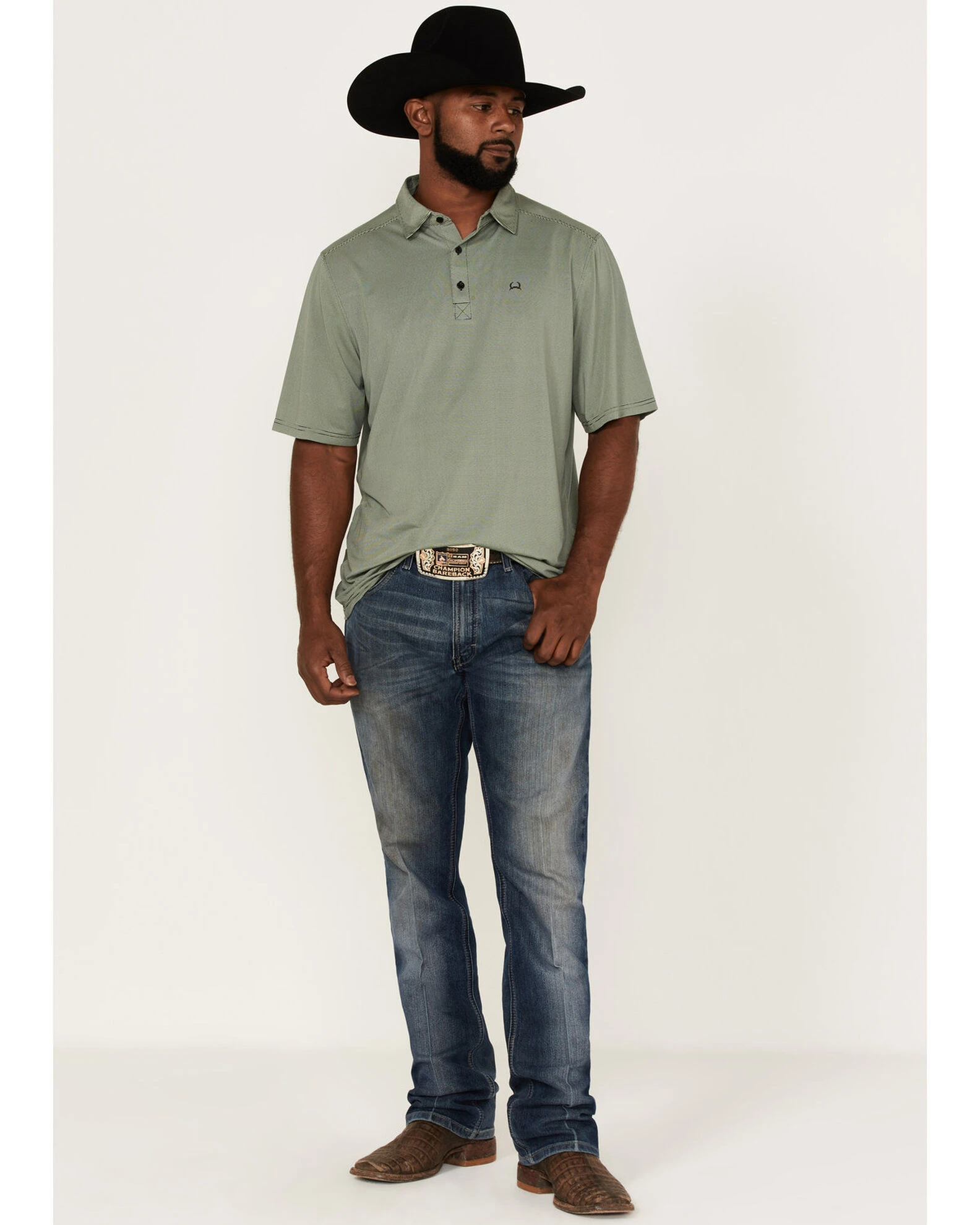 Cinch Men’s Arena Flex Lime Micro Stripe Short Sleeve Polo Shirt Light Green