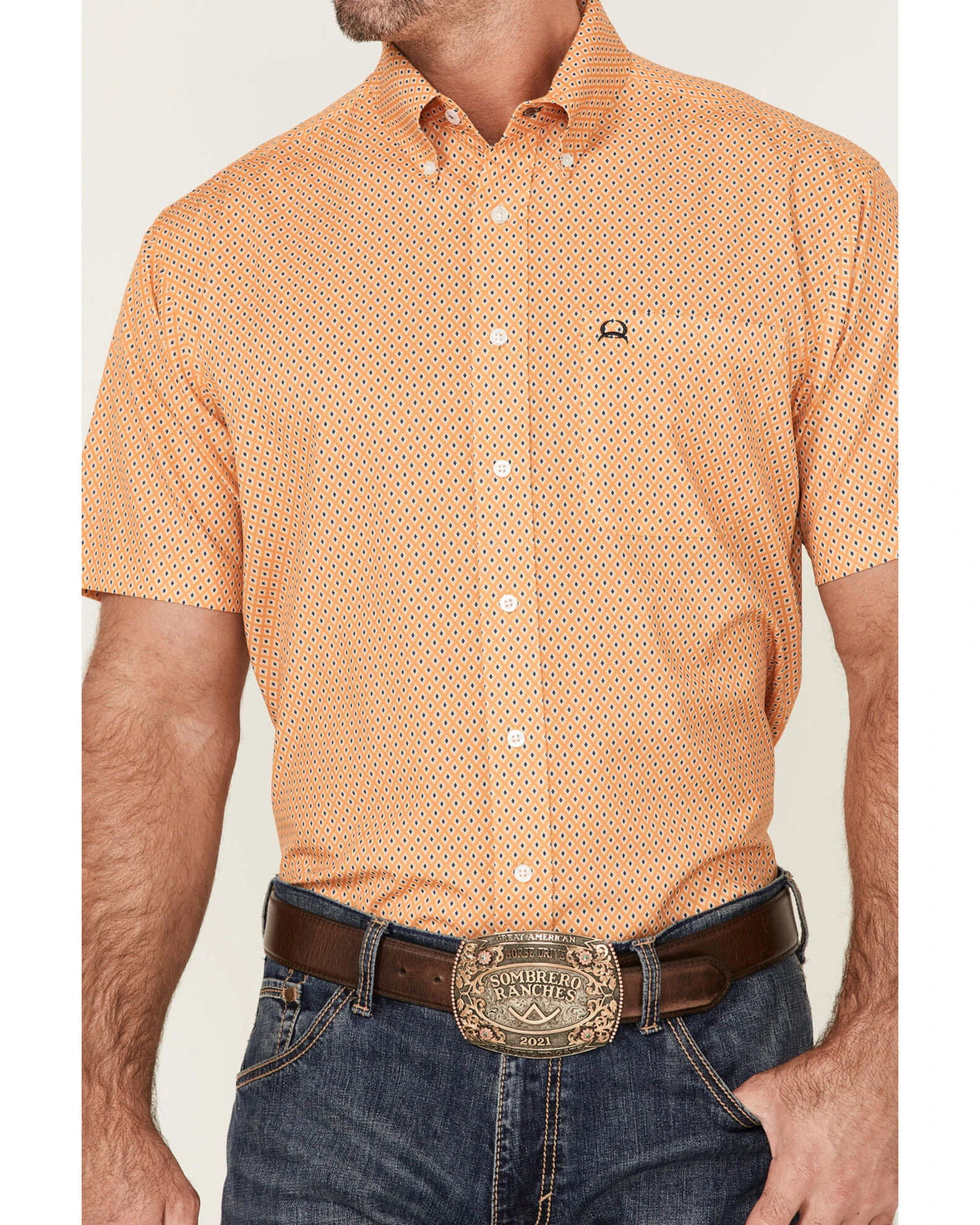Cinch Men’s Arena Flex Orange Geo Print Short Sleeve Button-Down Western Shirt