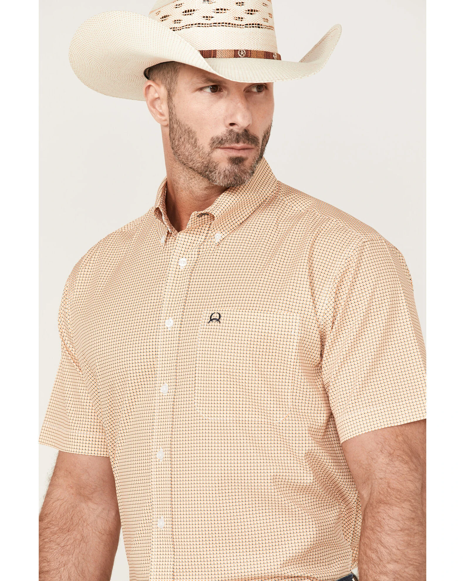 Cinch Men’s Arena Flex White & Orange Geo Print Short Sleeve Button-Down Western Shirt