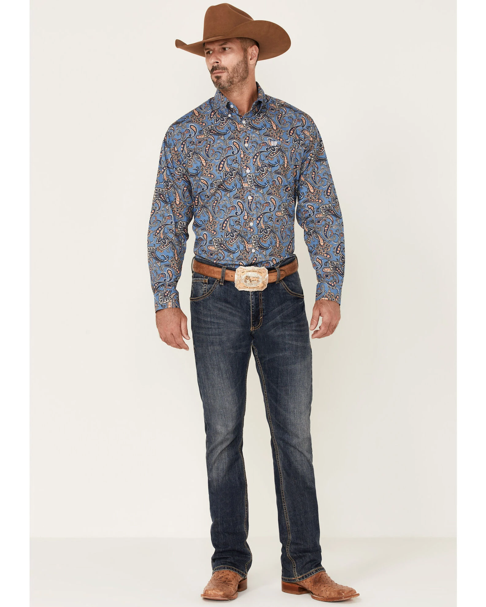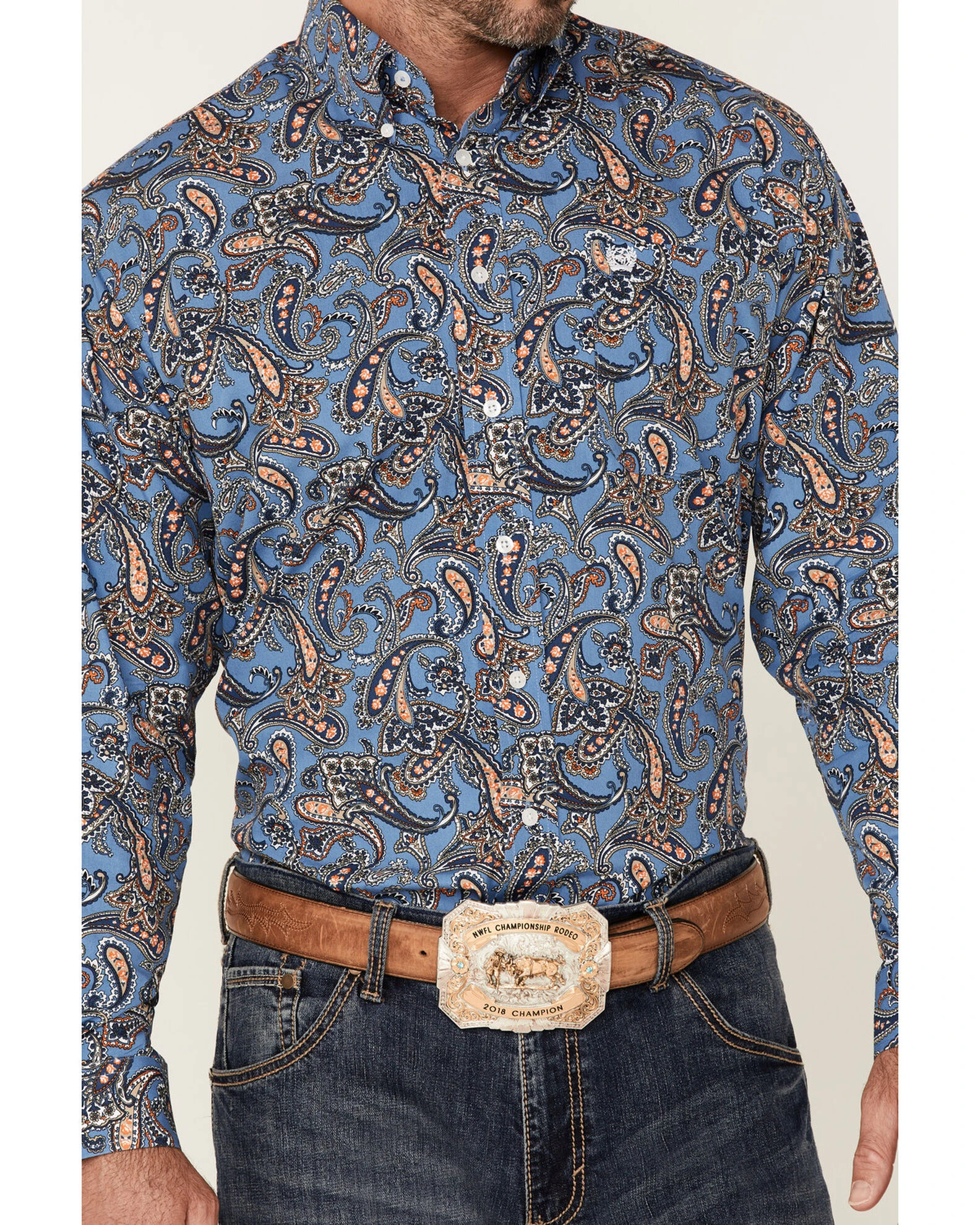 Cinch Men’s Blue Large Paisley Print Long Sleeve Button-Down Western Shirt