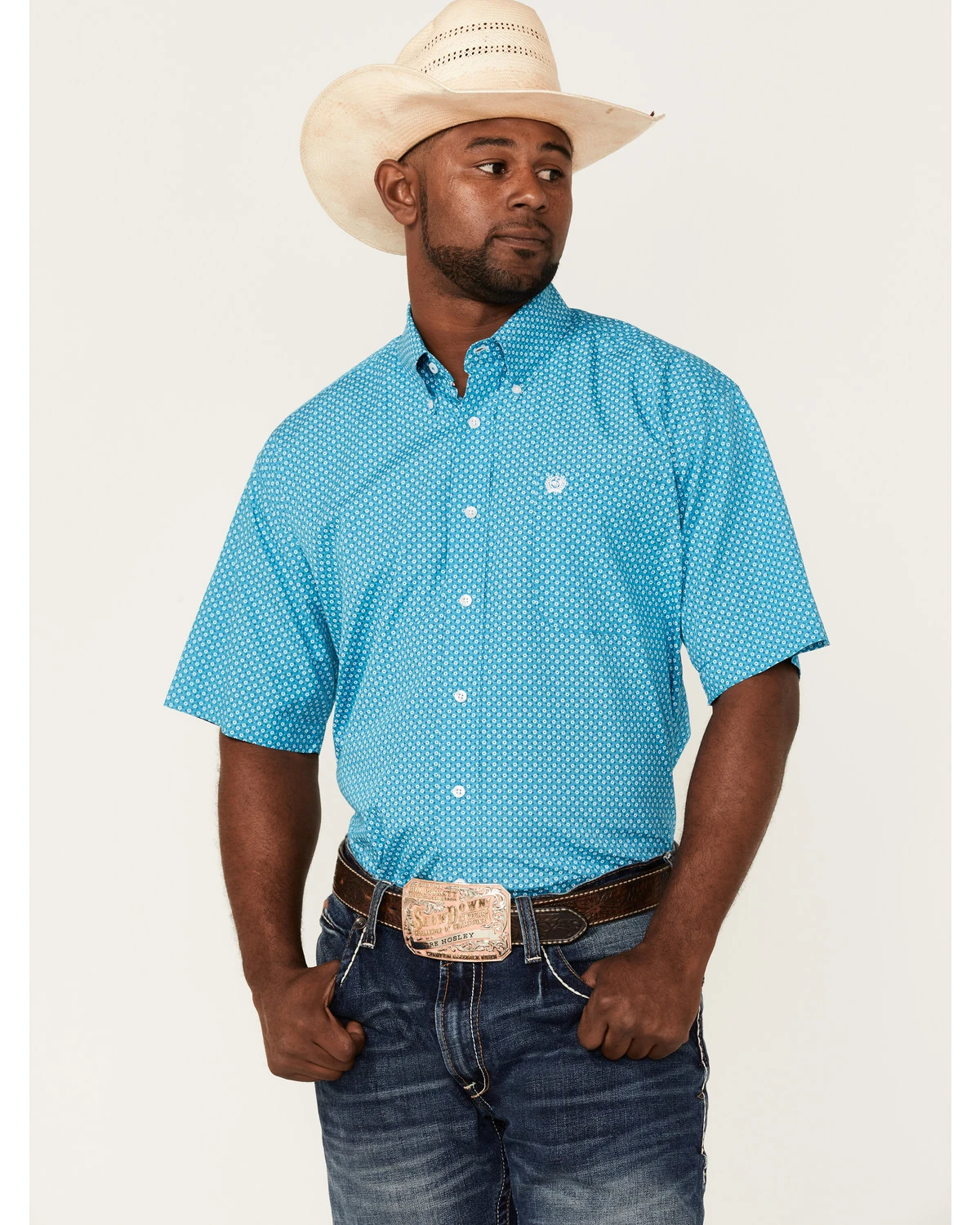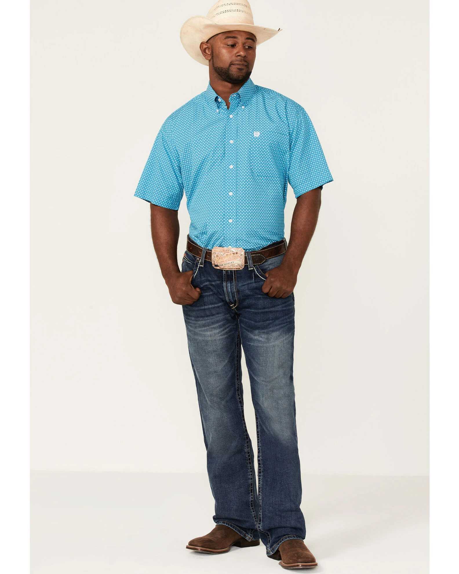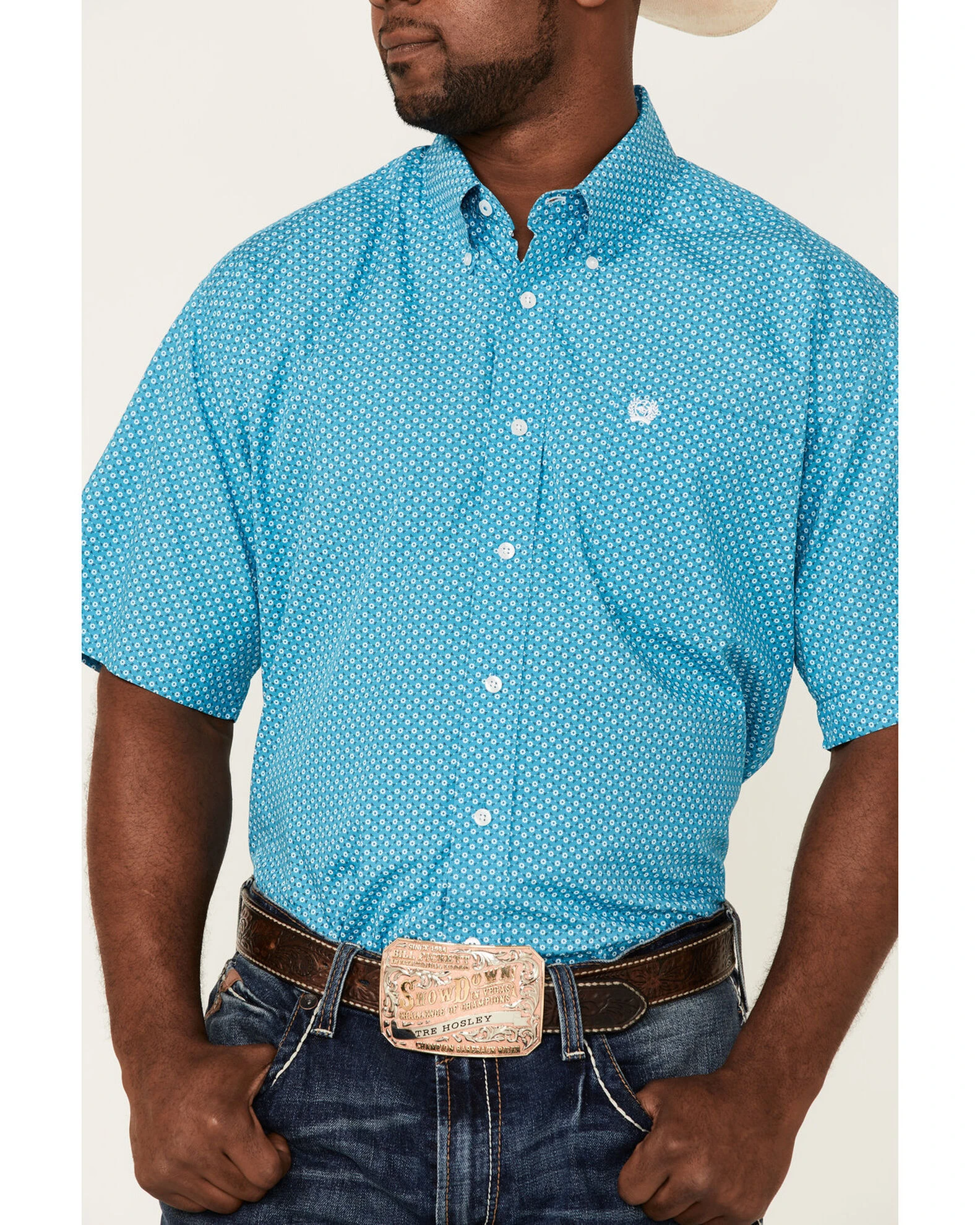 Cinch Men’s Blue Small Floral Print Short Sleeve Button-Down Western Shirt