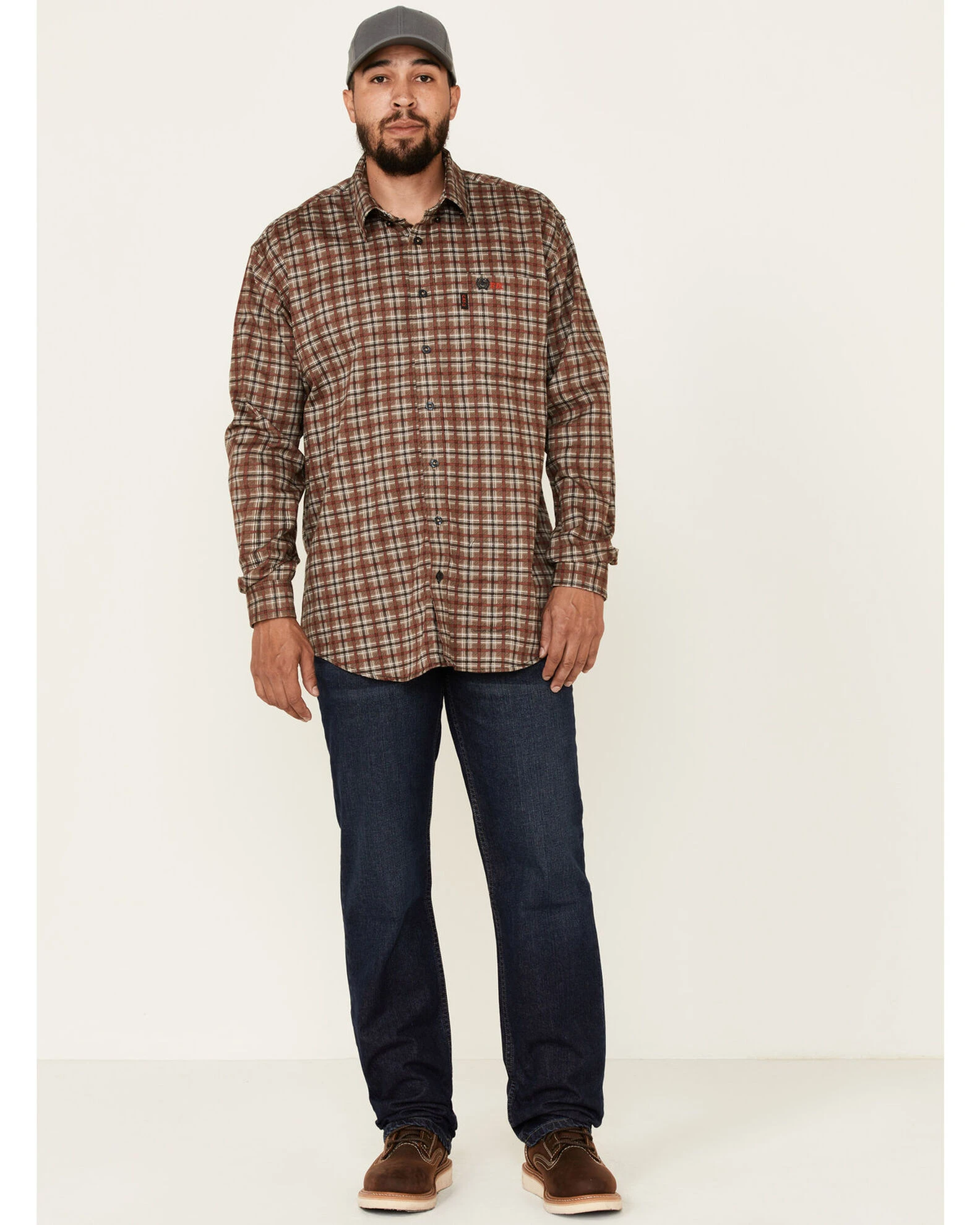 Cinch Men’s FR Brown Plaid Lightweight Long Sleeve Work Shirt