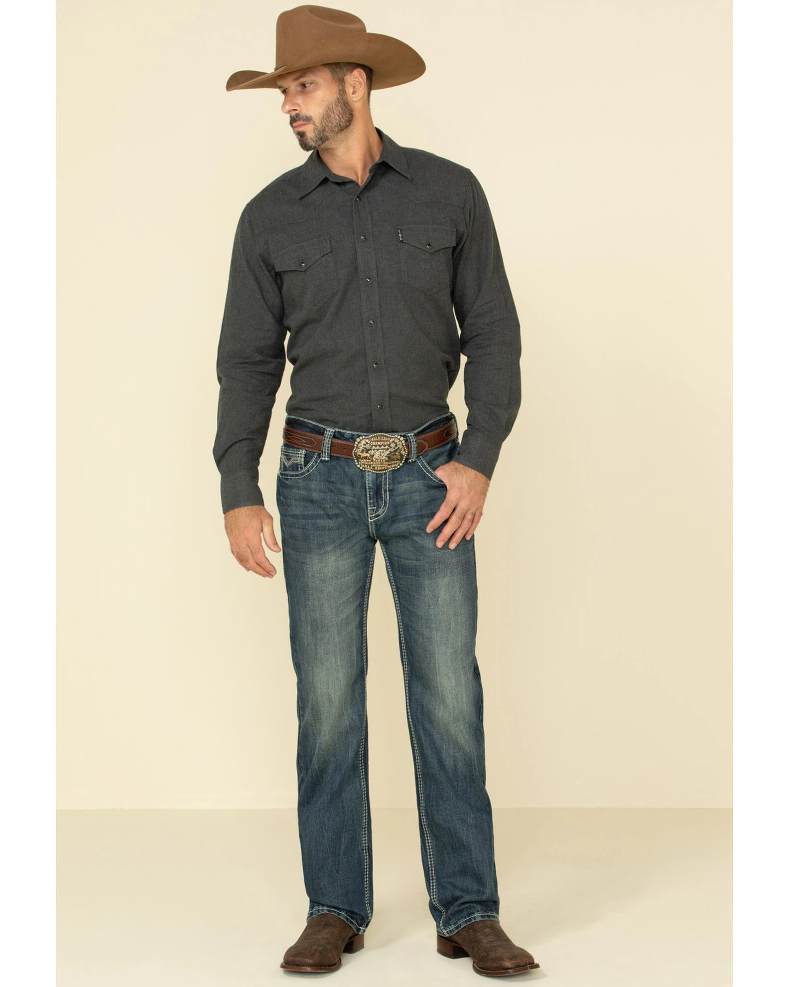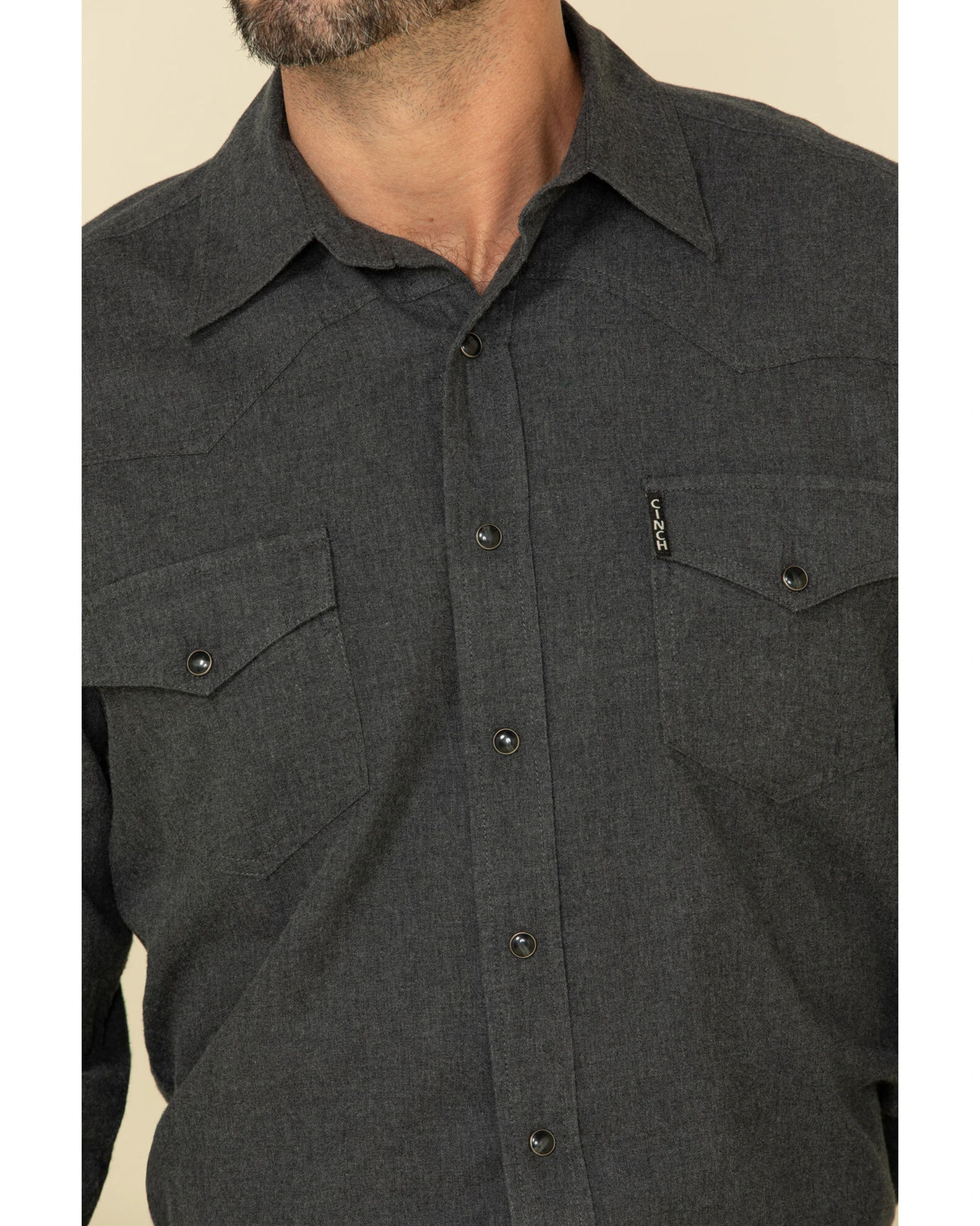 Cinch Men’s Heather Grey Herringbone Solid Long Sleeve Modern Fit Western Shirt