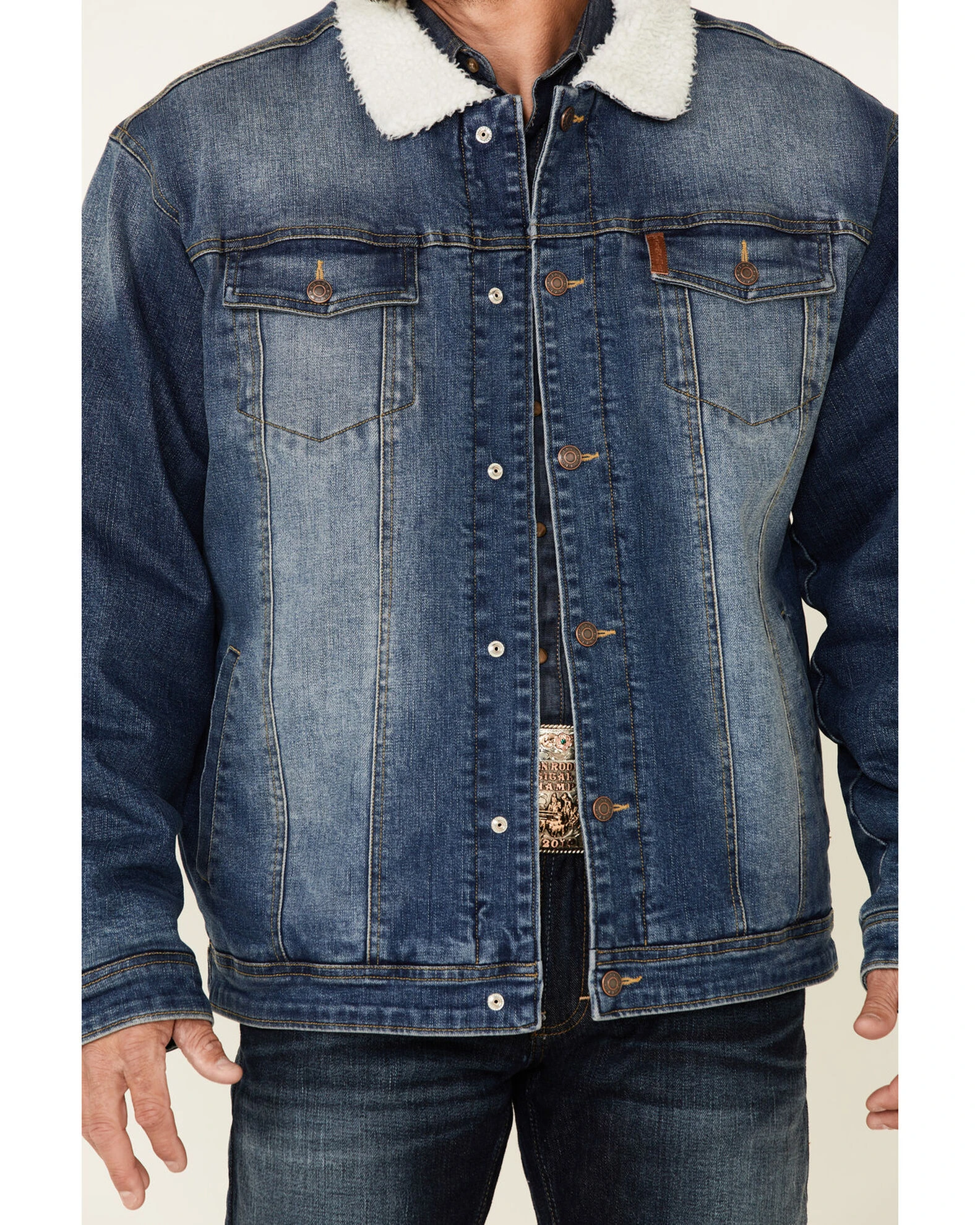 Cinch Men’s Indigo Denim Sherpa Lined Snap-Front Trucker Jacket – Big Blue