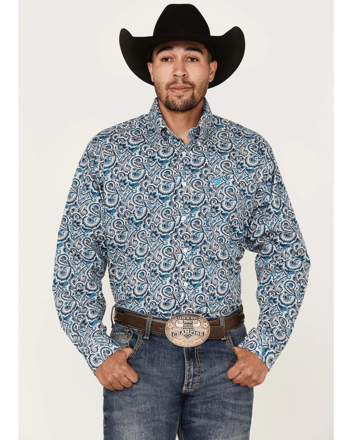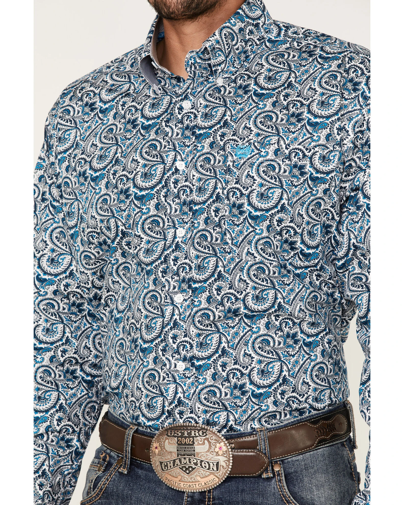 Cinch Men’s Large Paisley Print Long Sleeve Button-Down Western Shirt White