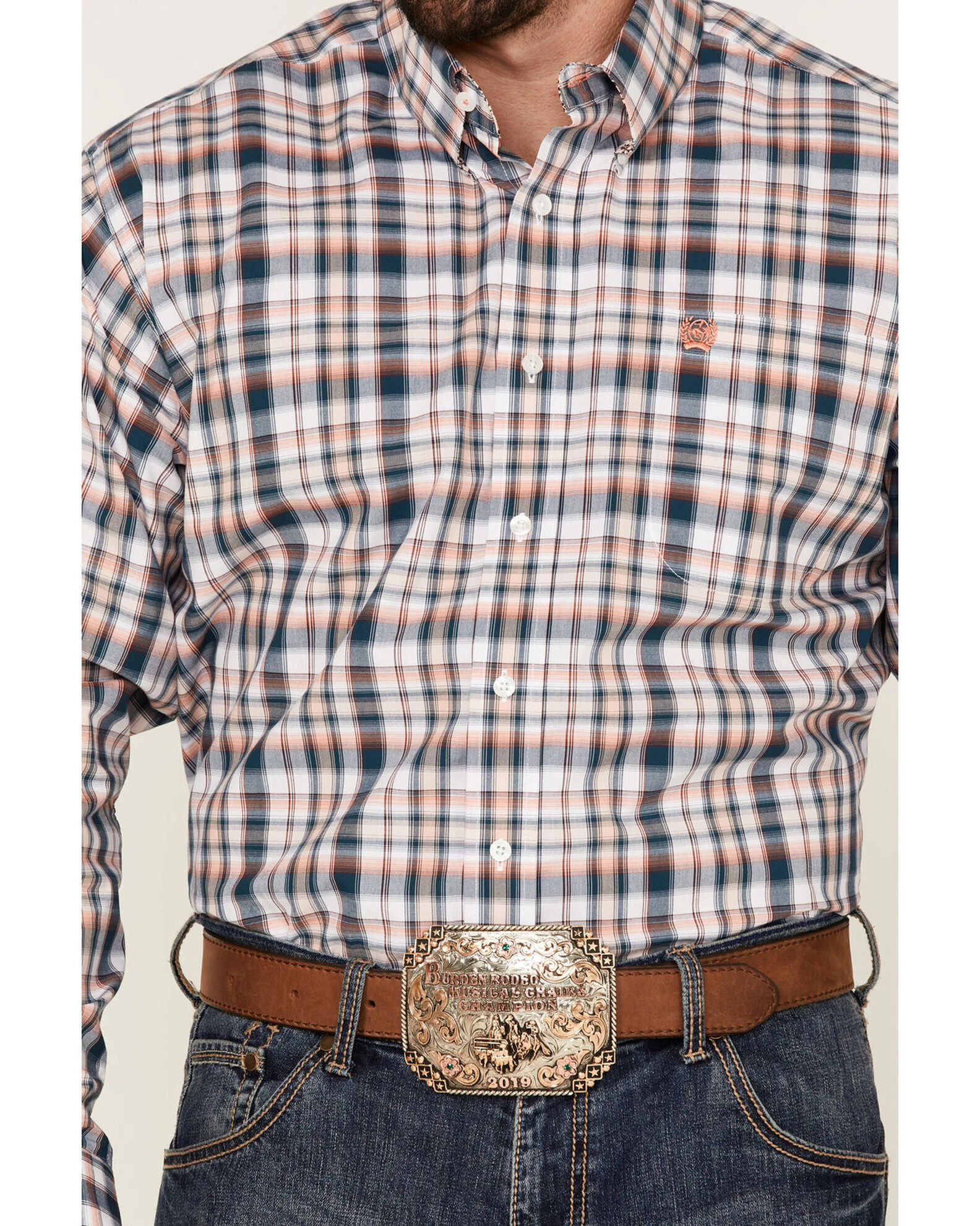 Cinch Men’s Large White & Pink Plaid Long Sleeve Button-Down Western Shirt