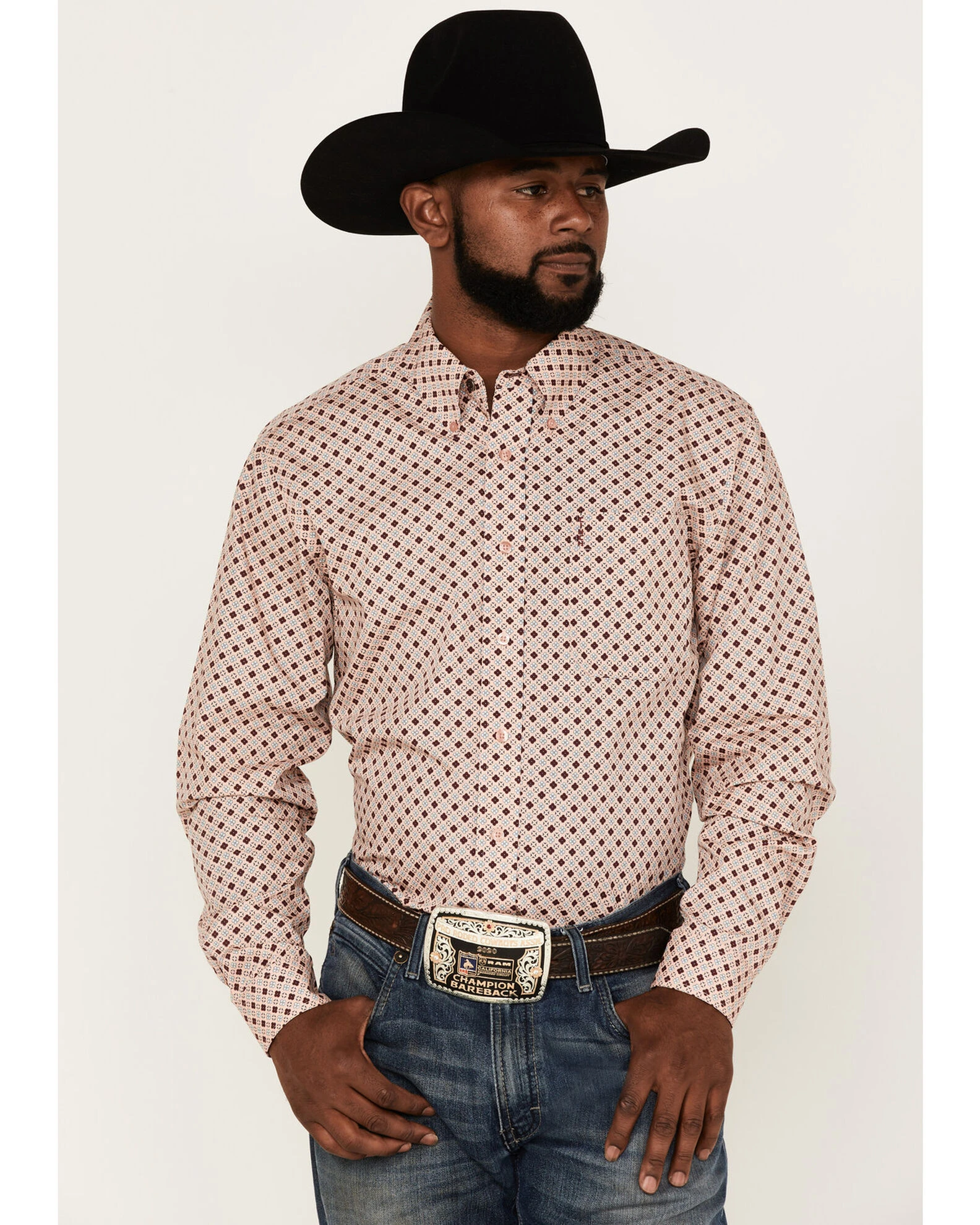 Cinch Men’s Modern Fit Pink Floral Geo Print Long Sleeve Button-Down Western Shirt