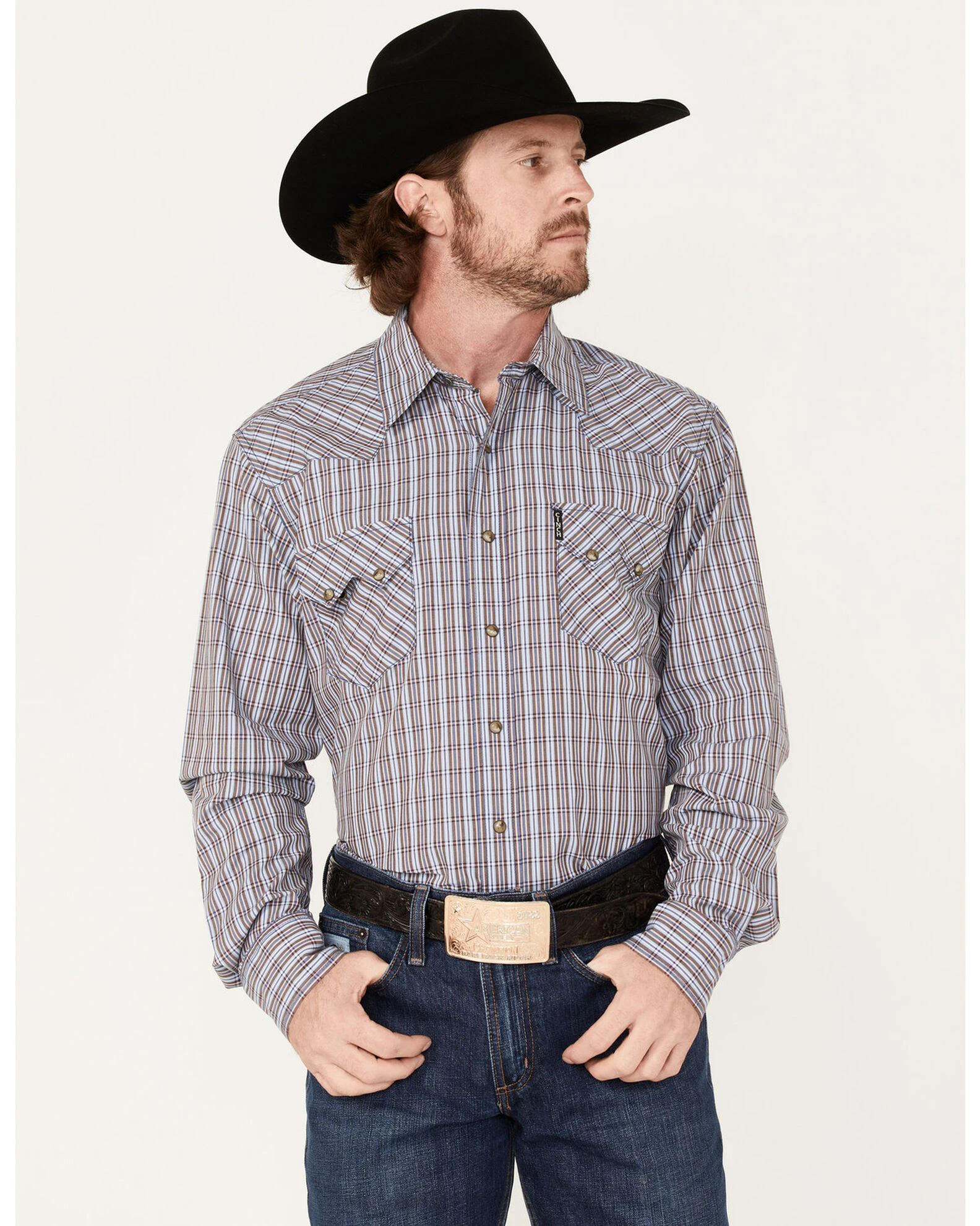 Cinch Men’s Modern Fit Small Plaid Snap Western Shirt Blue
