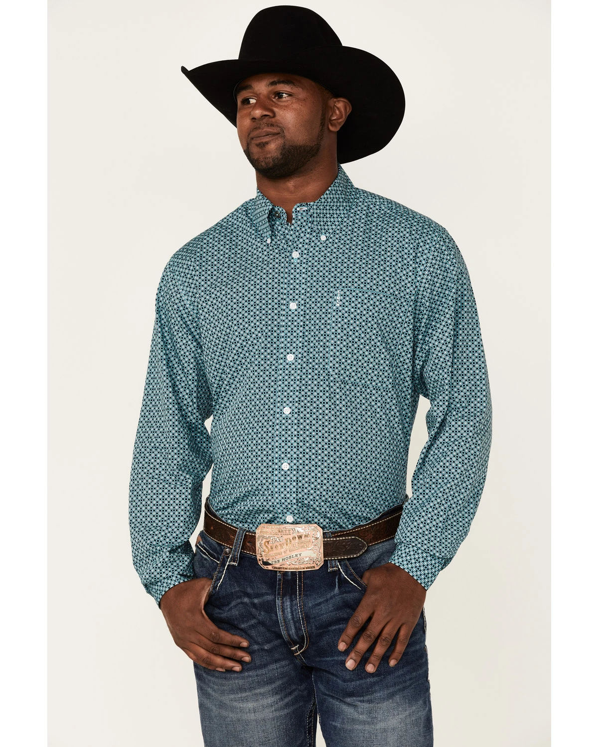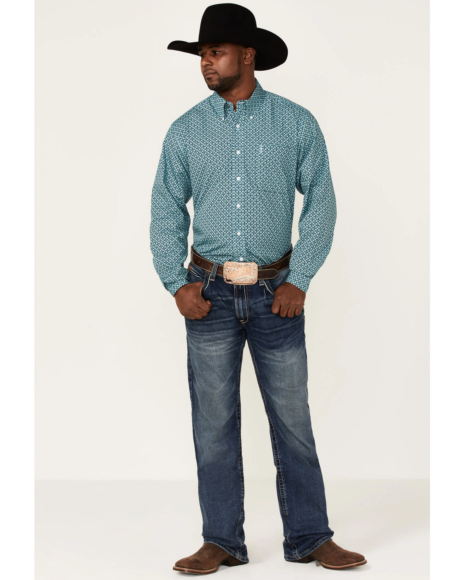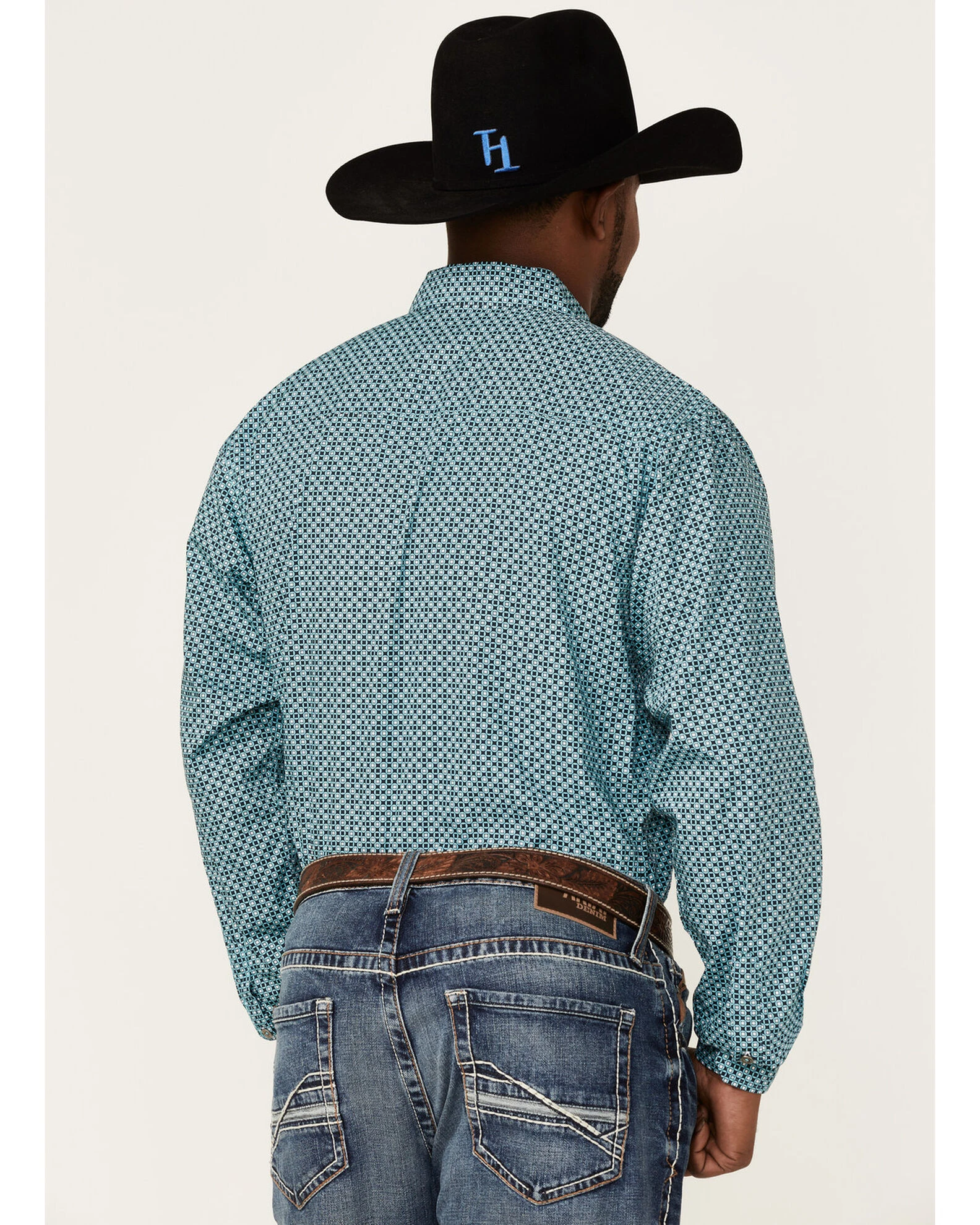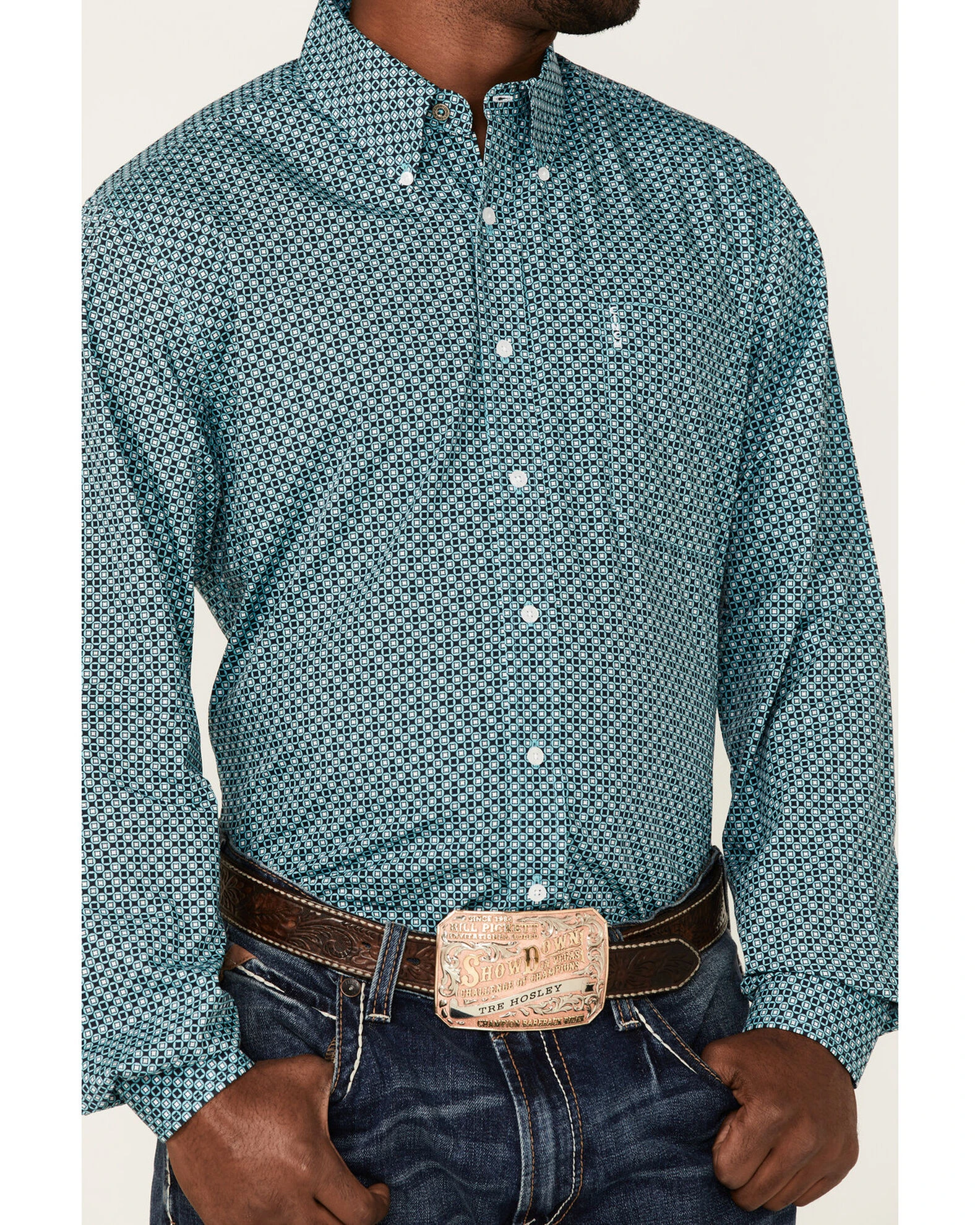 Cinch Men’s Modern Fit Turquiose Geo Print Long Sleeve Button-Down Western Shirt Turquoise
