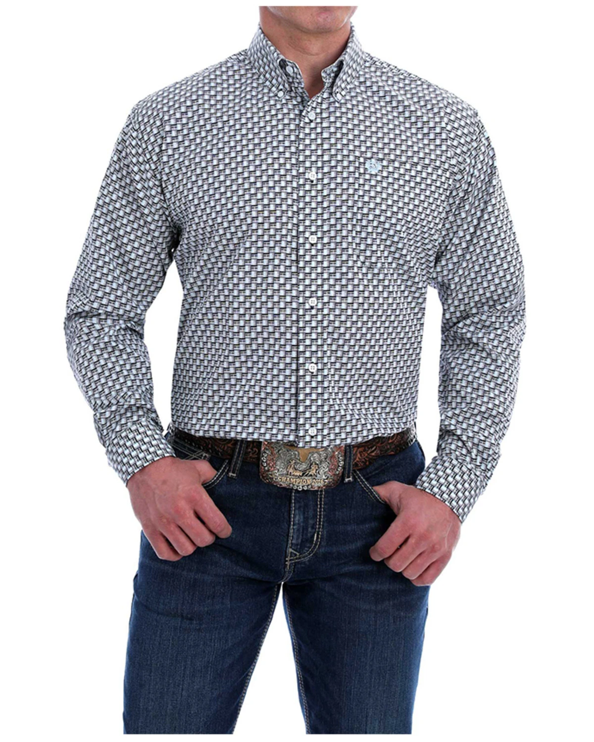 Cinch Men’s Multi Square Geo Print Long Sleeve Button-Down Western Shirt