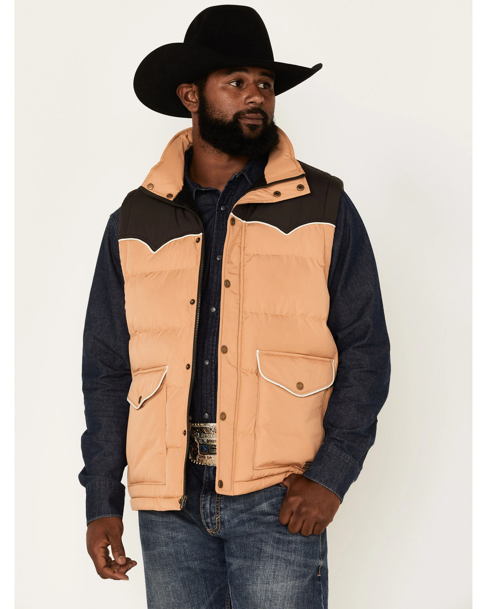Cinch Men’s Quilted Storm Flap Colorblock Vest Lt Brown
