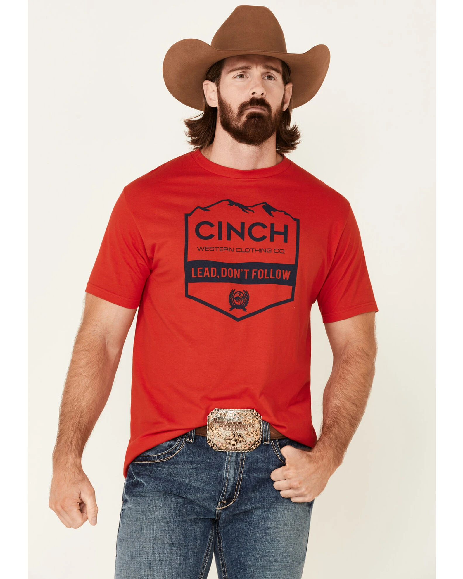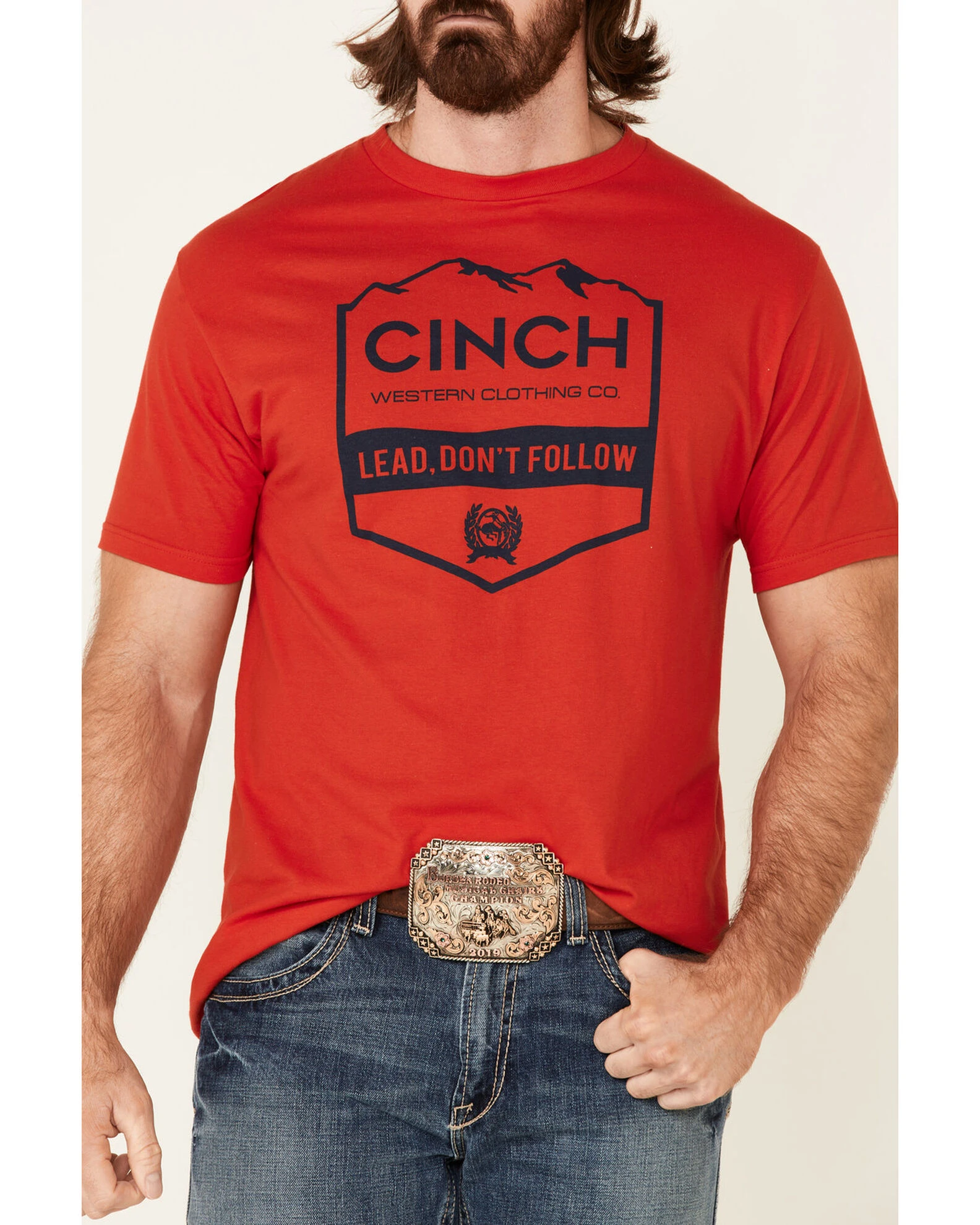 Cinch Men’s Red Lead Don’t Follow Mountain Graphic Short Sleeve T-Shirt