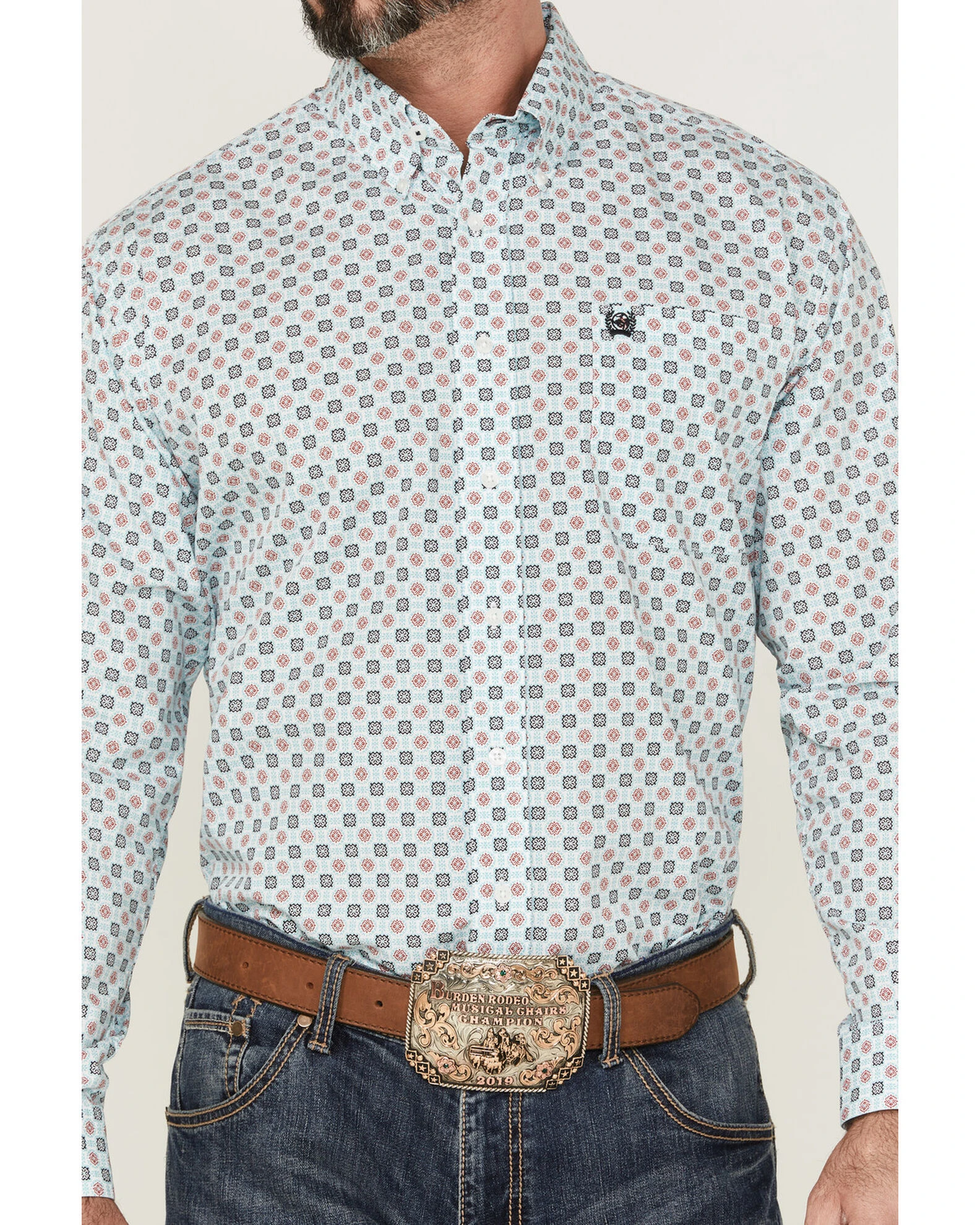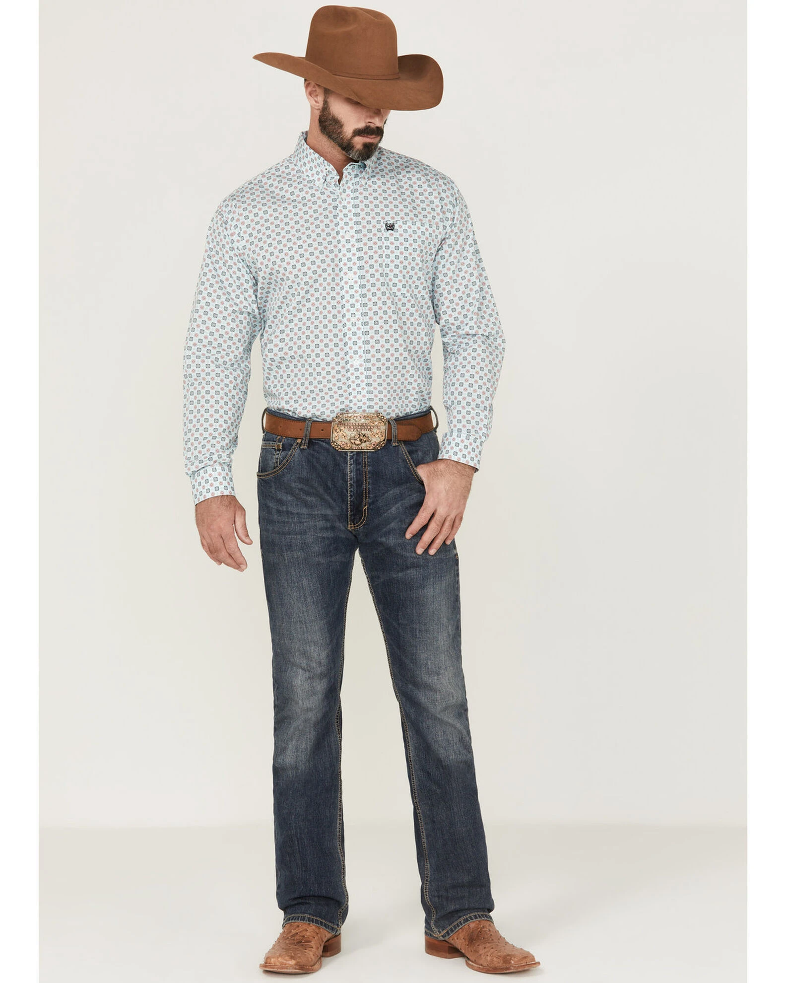 Cinch Men’s Small Floral Print Long Sleeve Button-Down Western Shirt – Big White