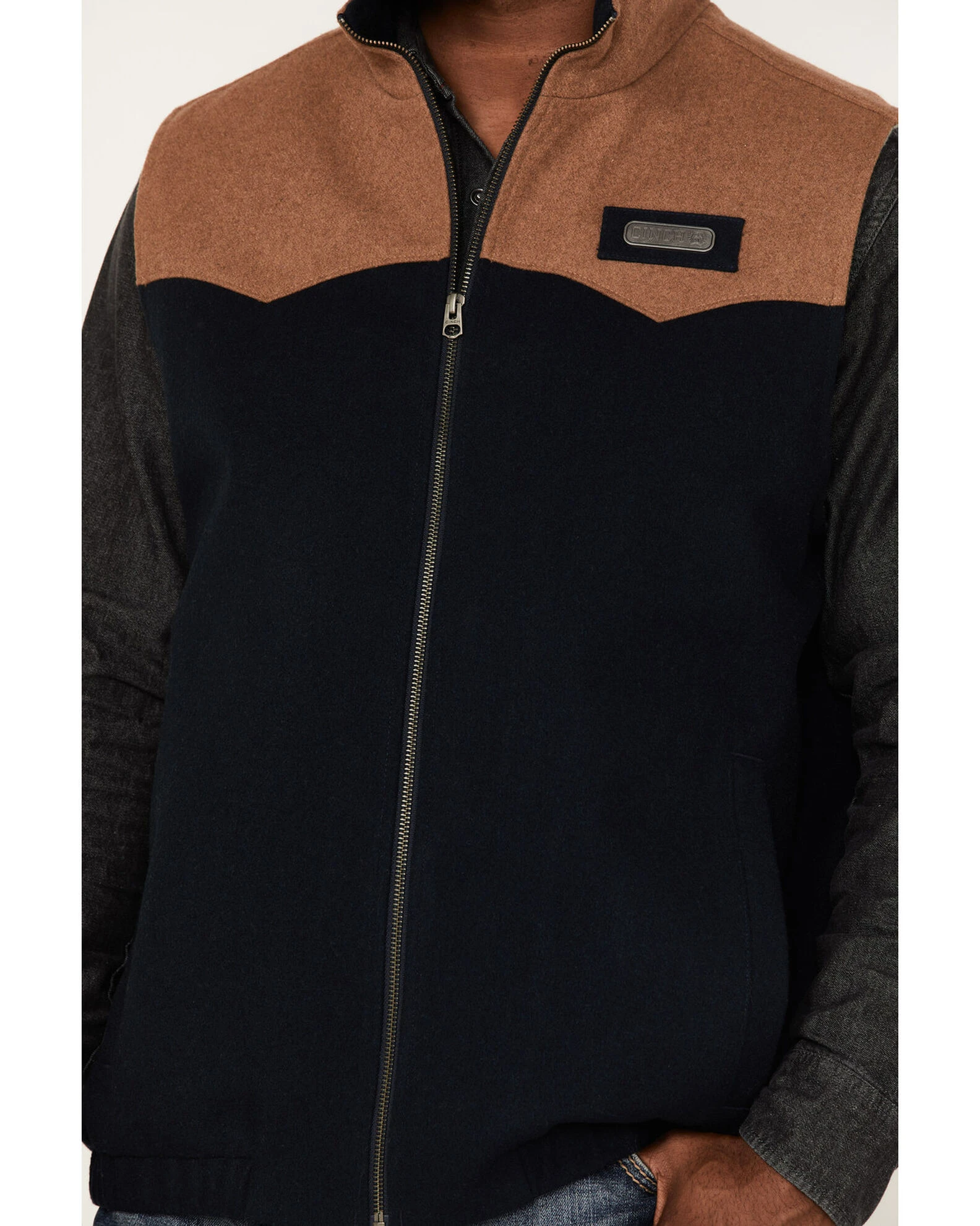 Cinch Men’s Solid Color-Block Concealed Carry Zip-Front Wool Vest Navy