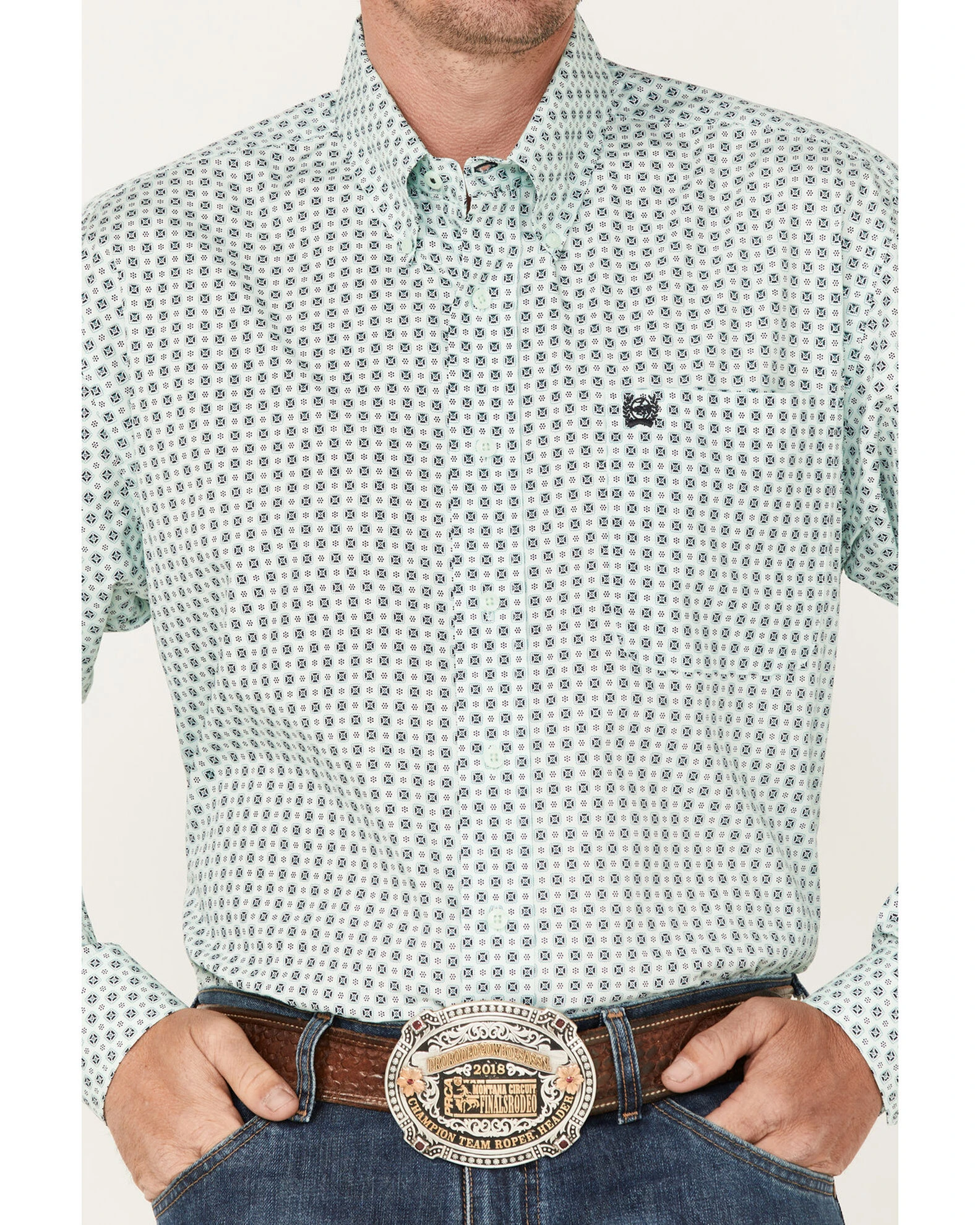 Cinch Men’s Square Green Geo Print Long Sleeve Button-Down Western Shirt