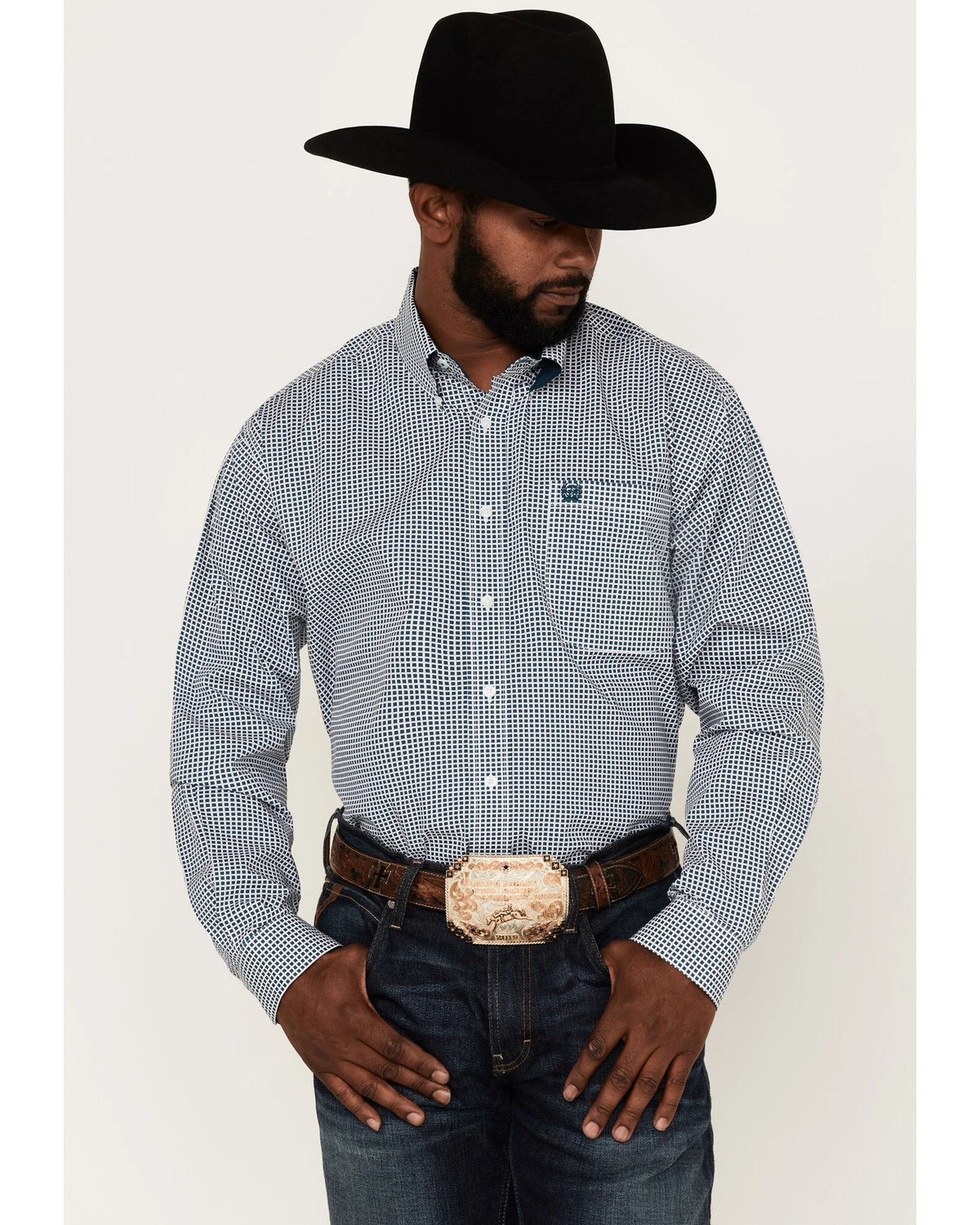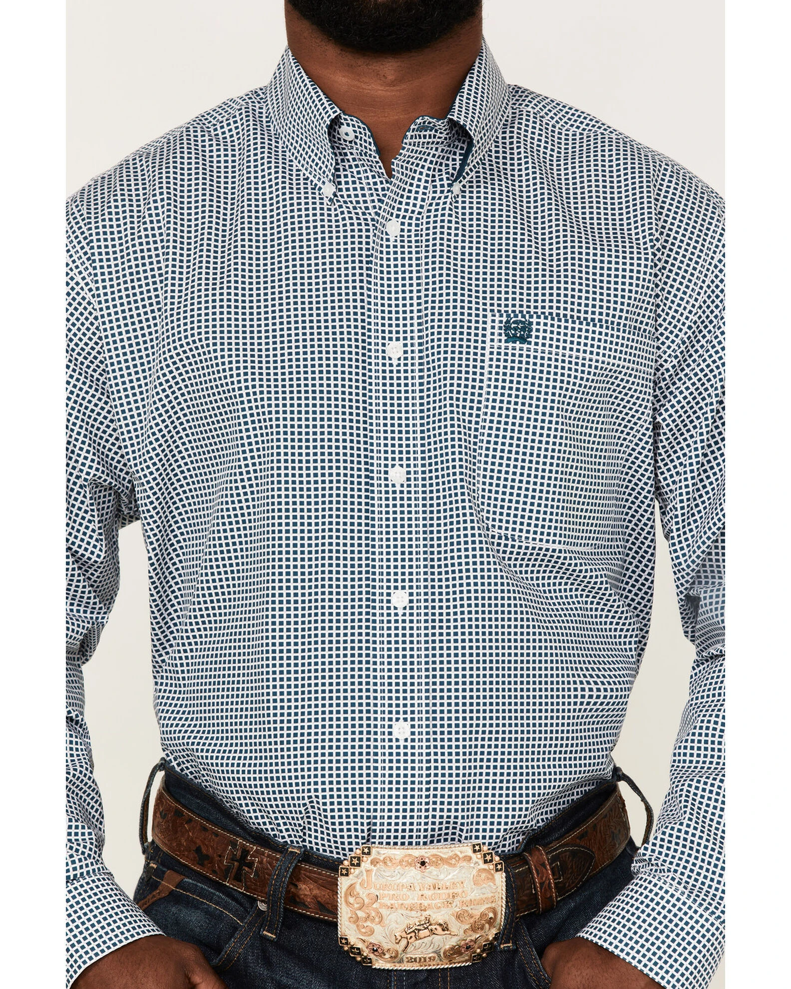 Cinch Men’s Square Teal Geo Print Long Sleeve Button-Down Western Shirt