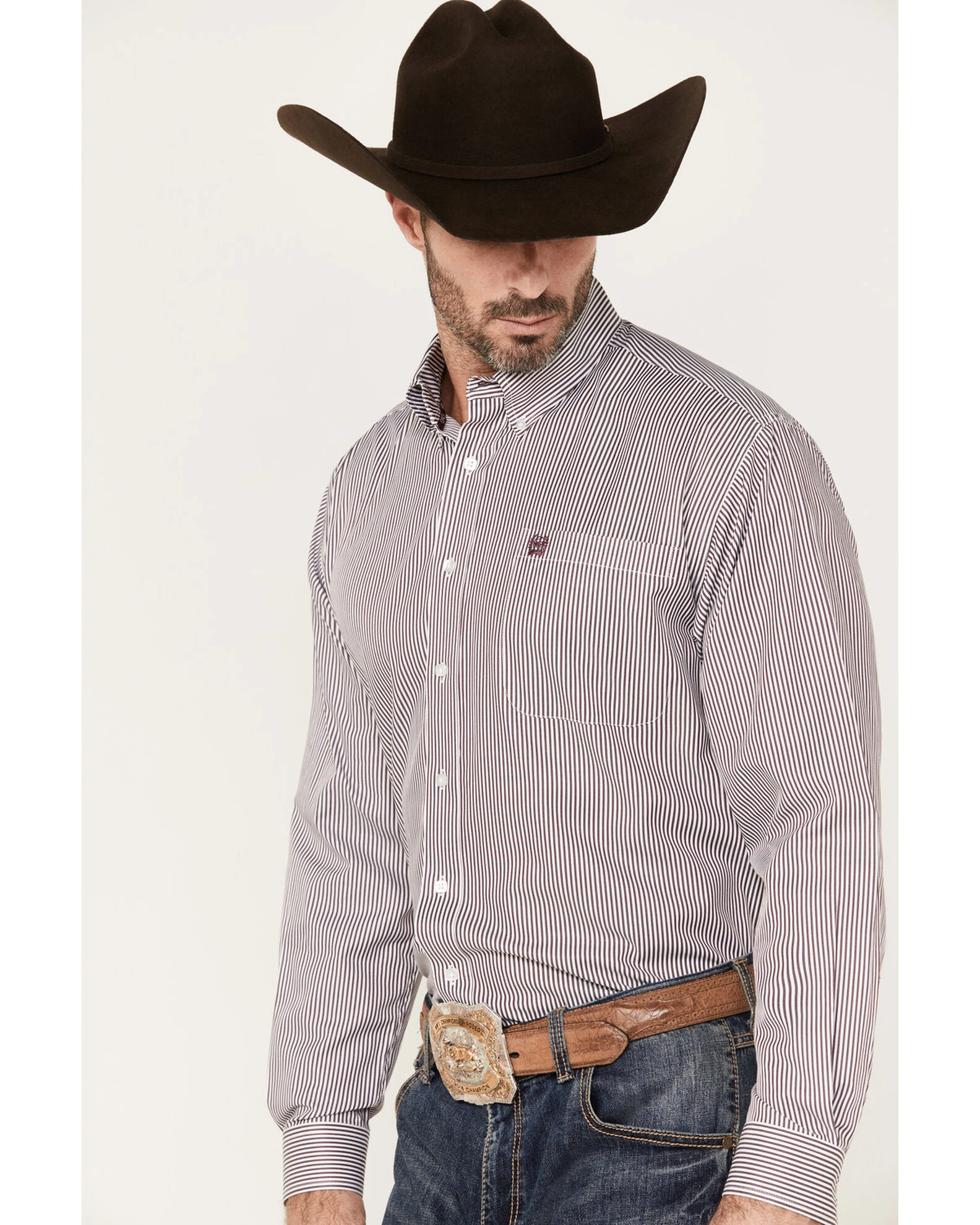 Cinch Men’s Striped Long Sleeve Button Down Western Shirt Purple