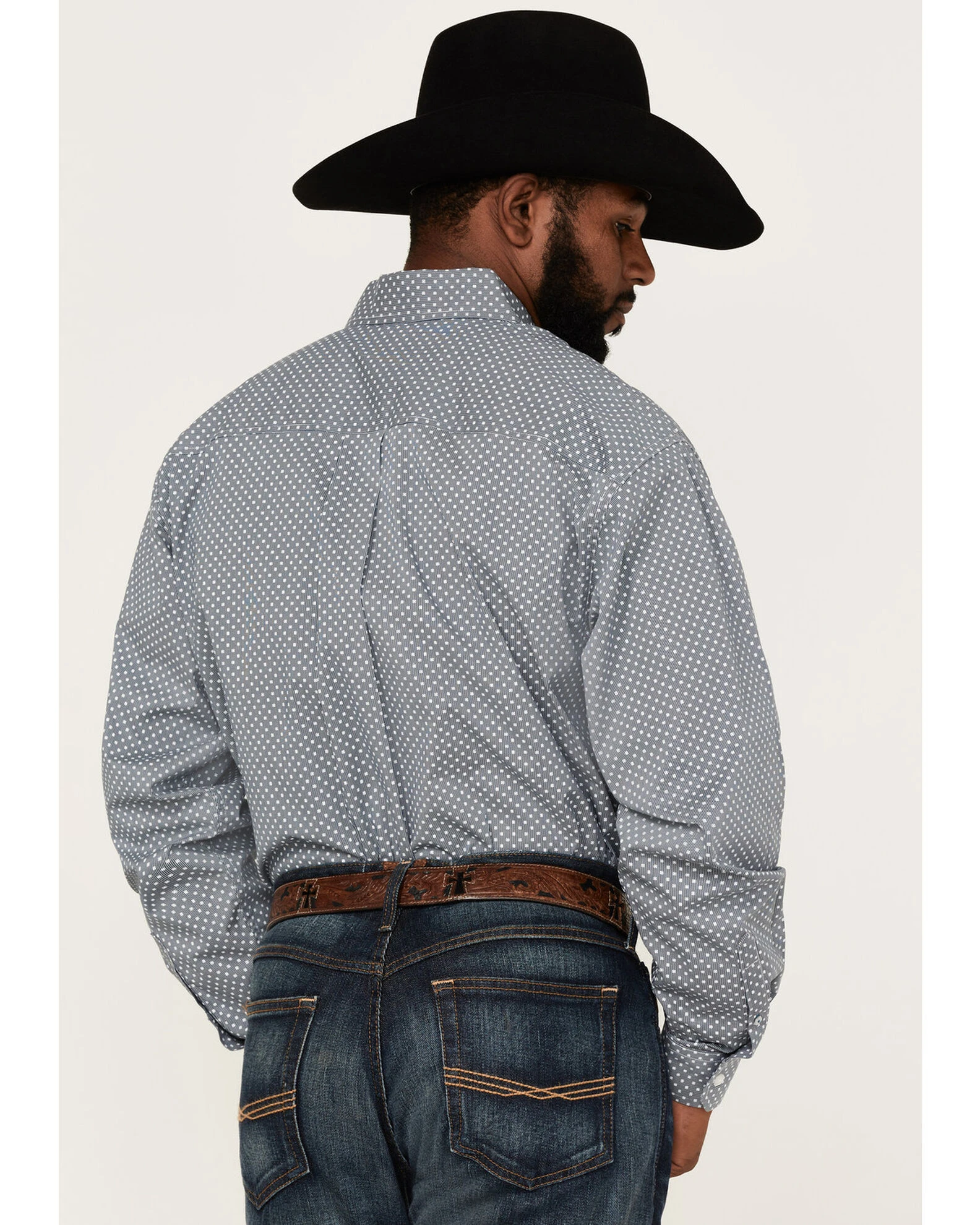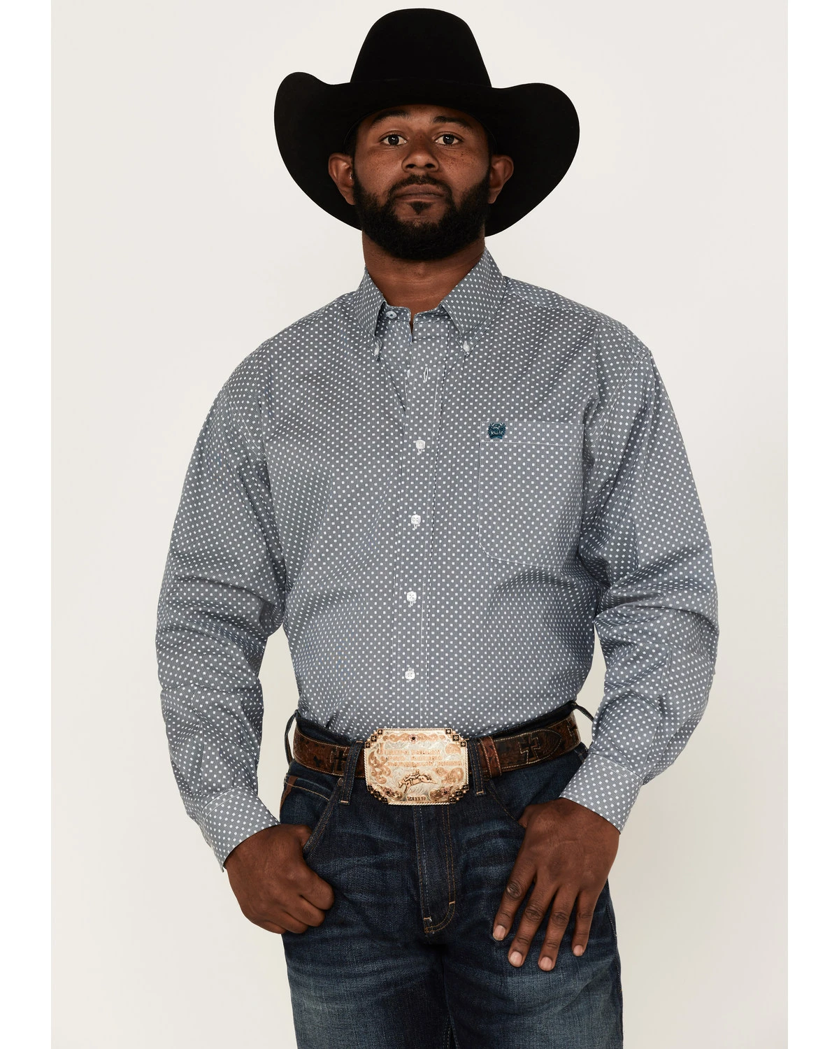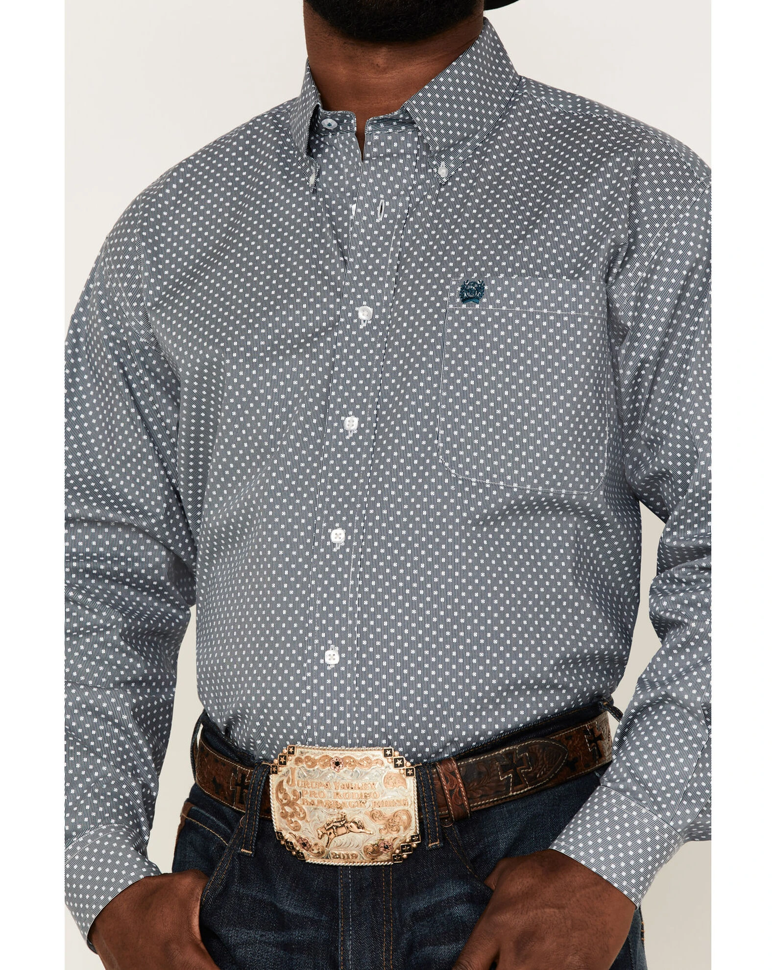 Cinch Men’s Striped Teal Stretch Geo Print Long Sleeve Button-Down Western Shirt