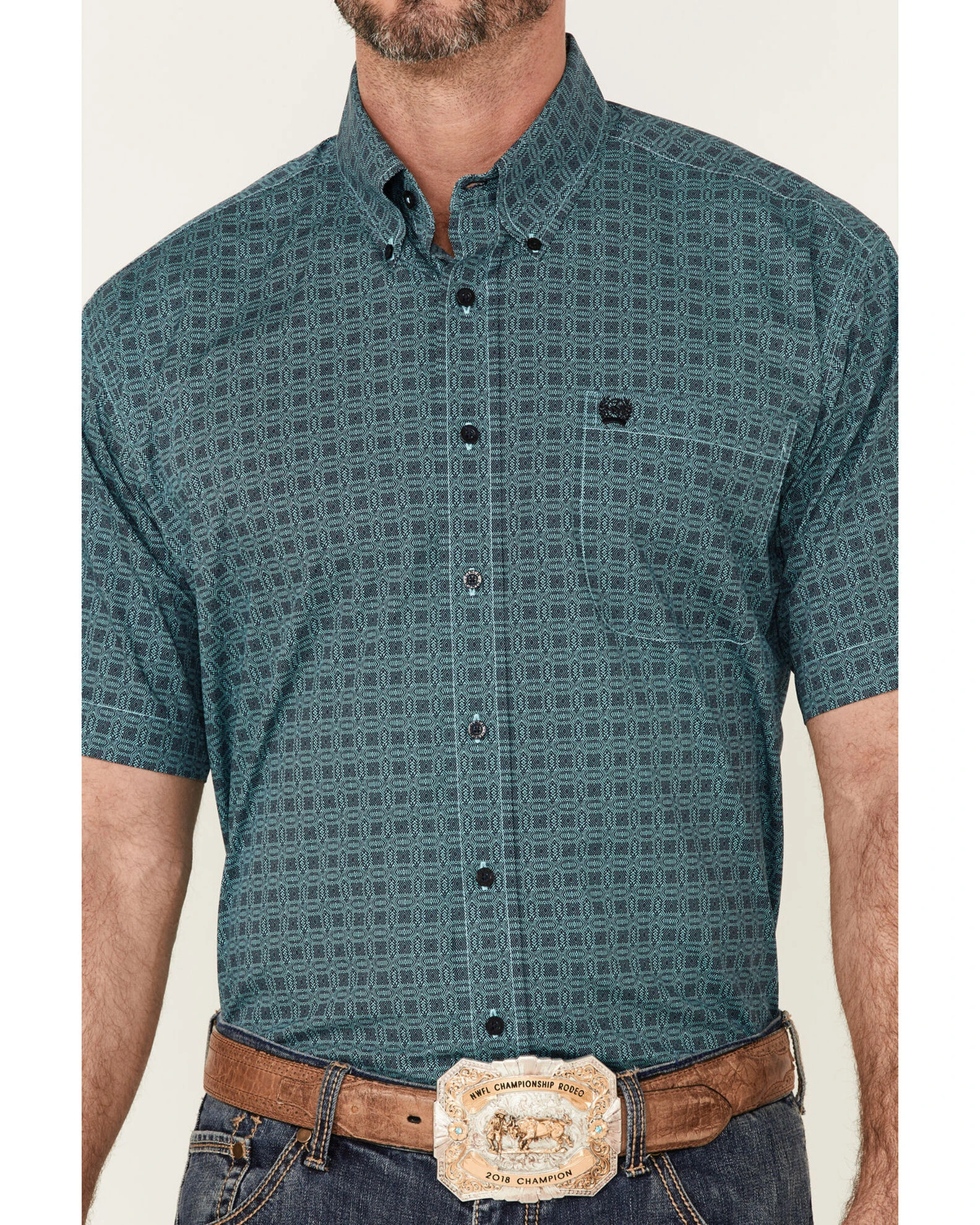 Cinch Men’s Turquoise Geo Print Short Sleeve Button-Down Western Shirt – Big
