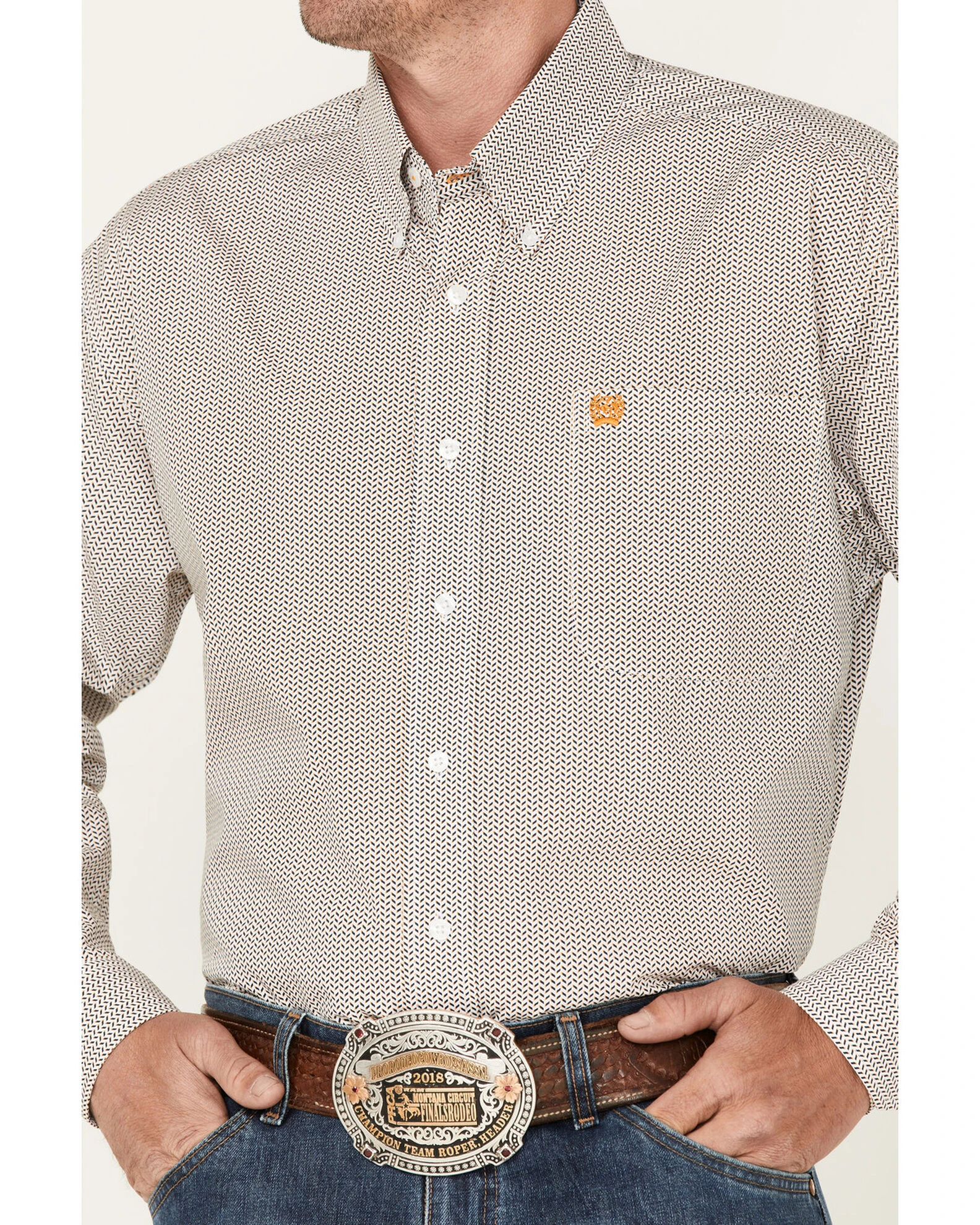 Cinch Men’s Vertical White Print Long Sleeve Button-Down Western Shirt