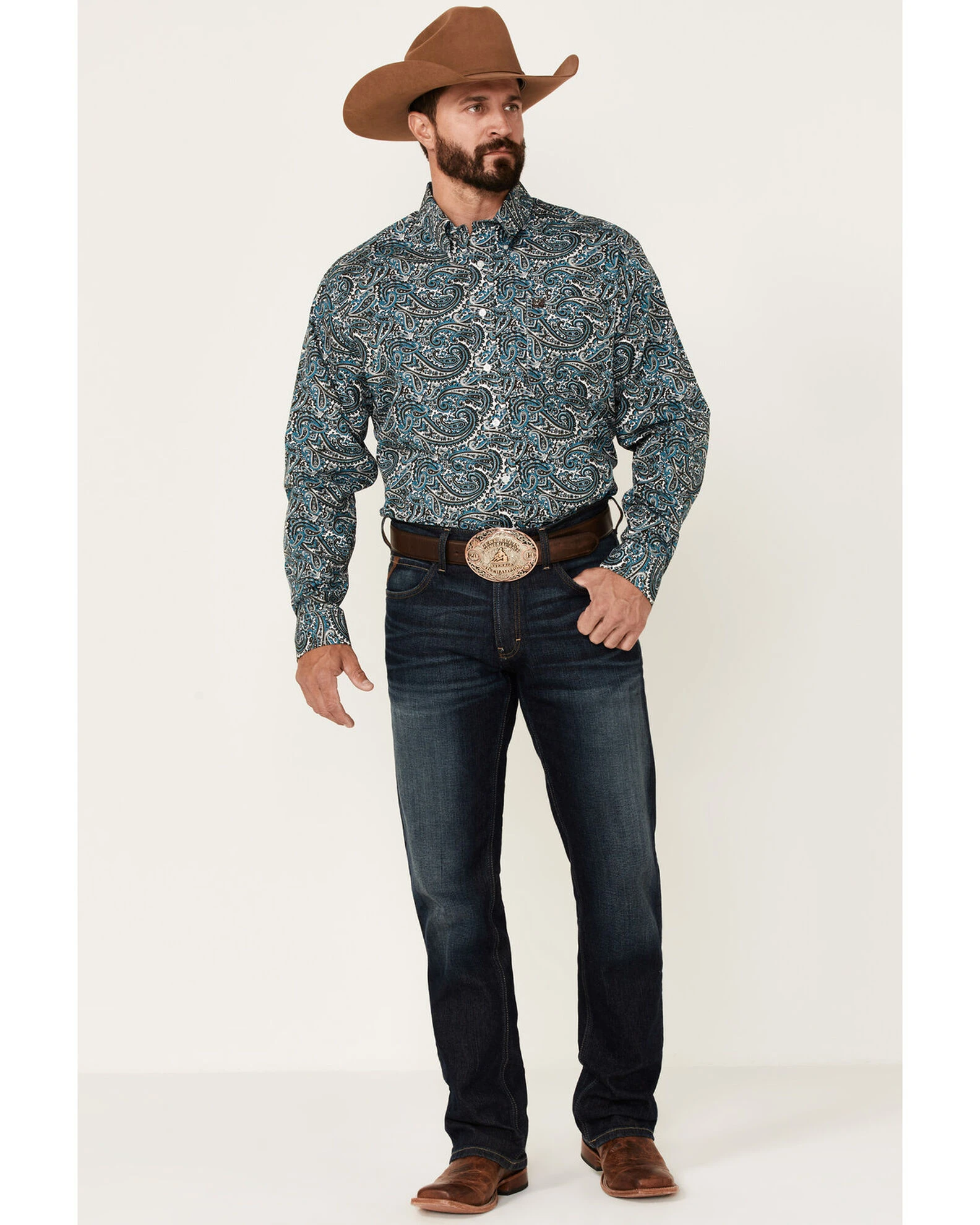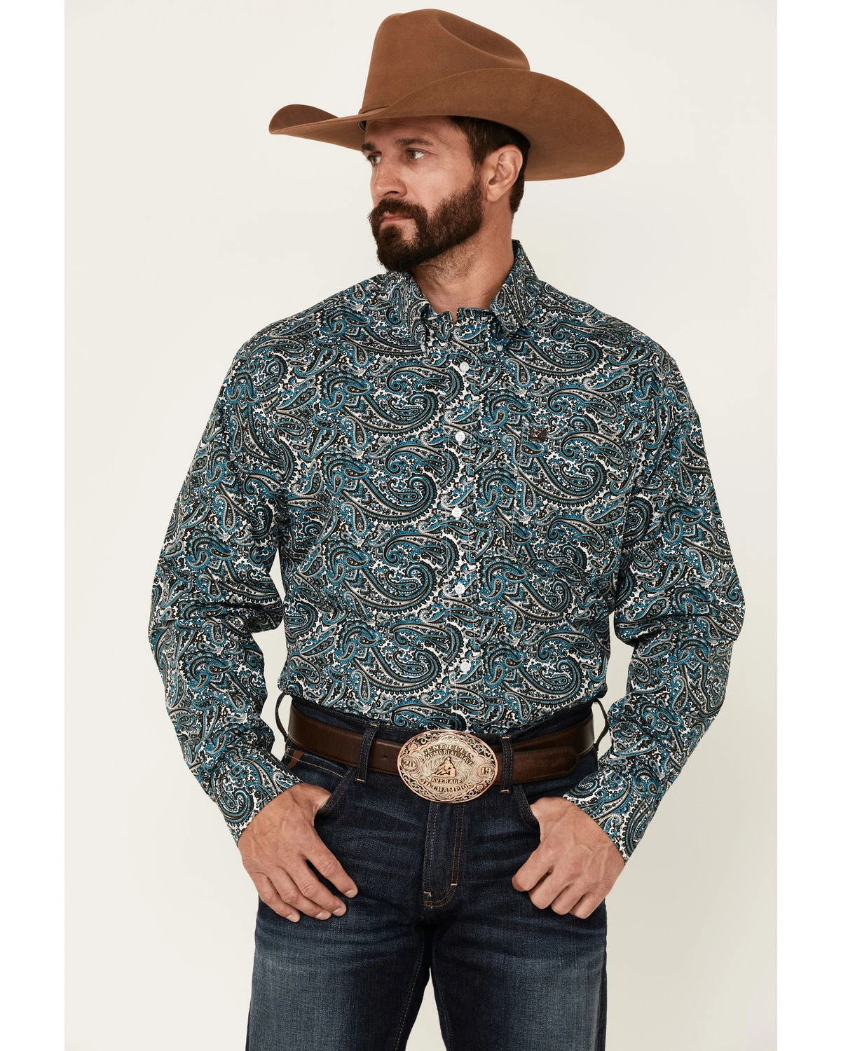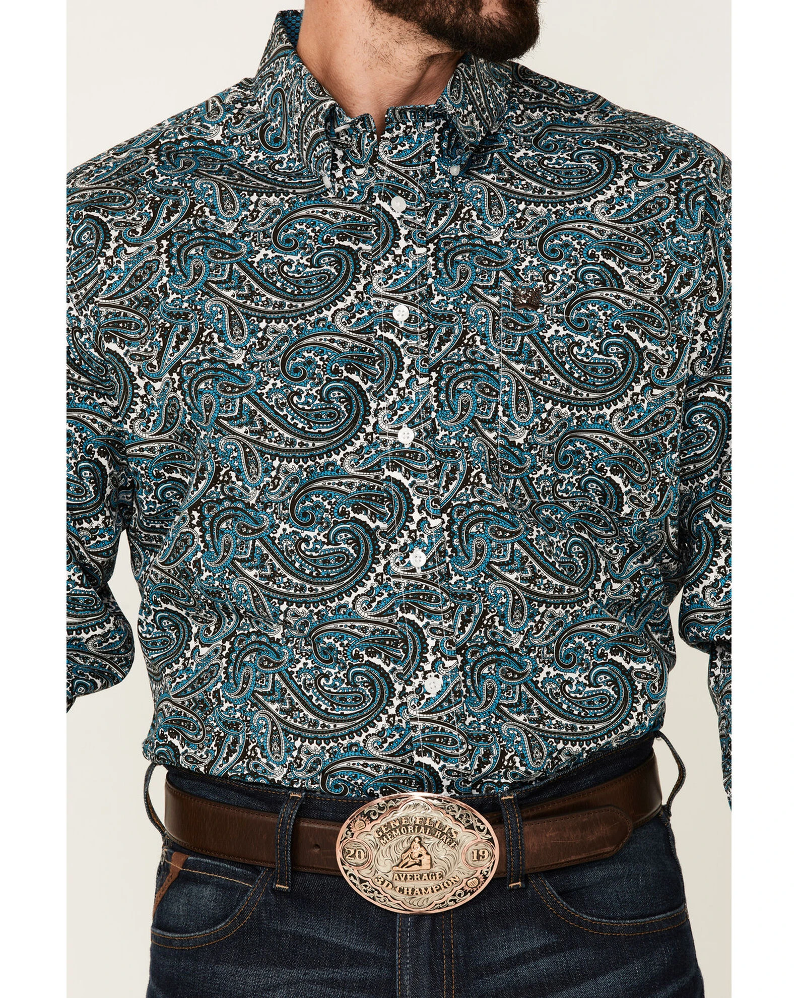 Cinch Men’s White Large Paisley Print Long Sleeve Button-Down Western Shirt
