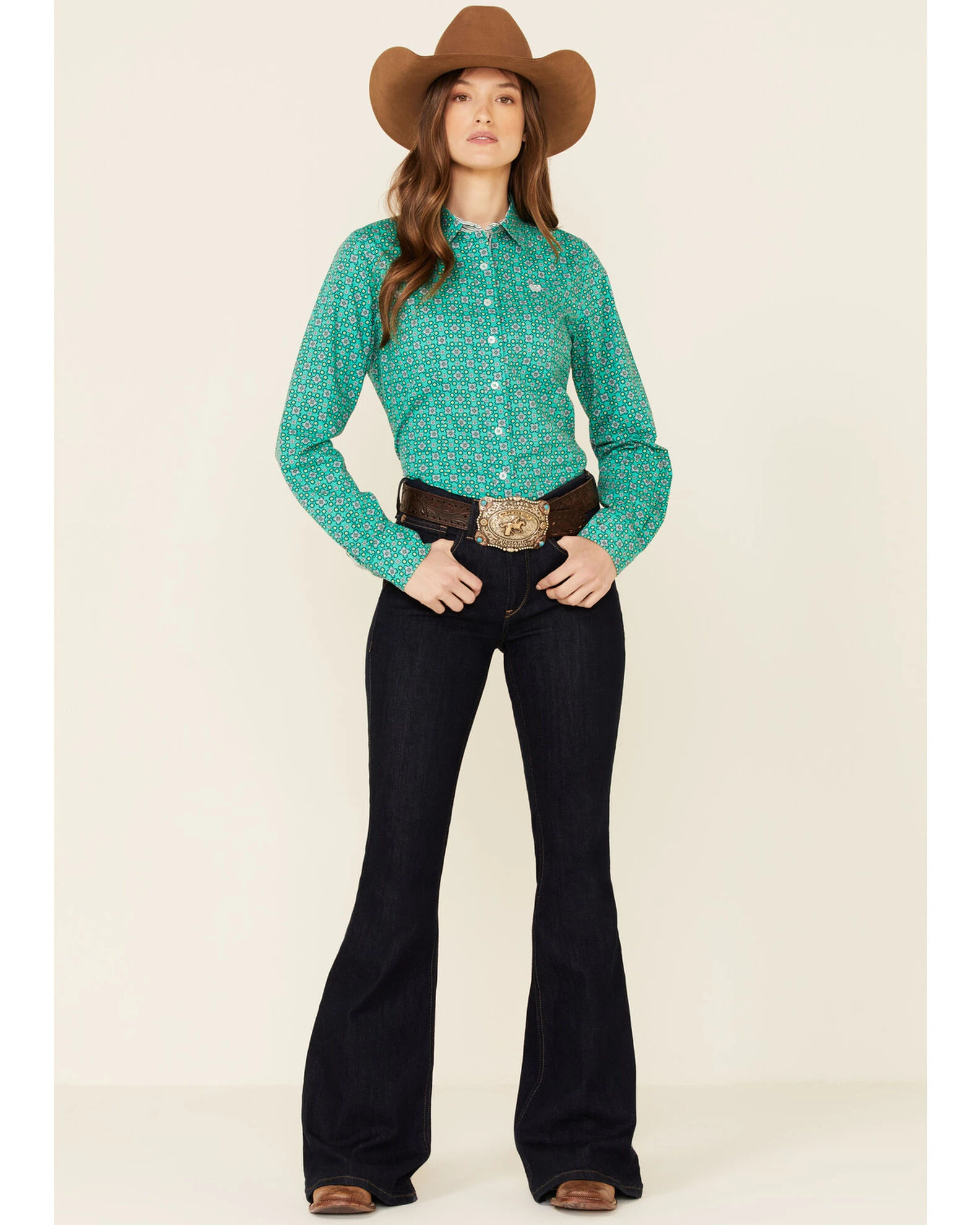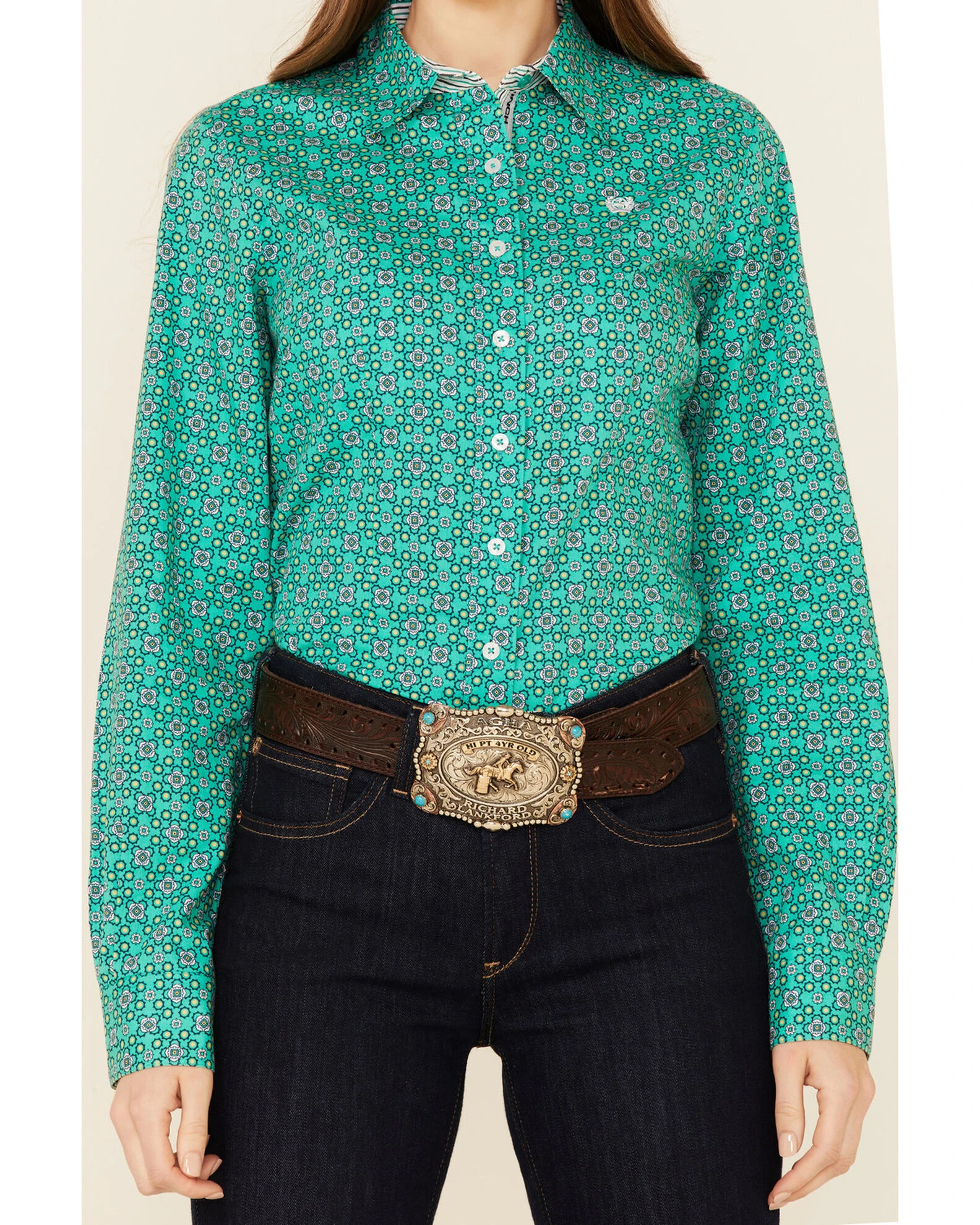 Cinch Women’s Green Geo Print Long Sleeve Button-Down Western Core Shirt