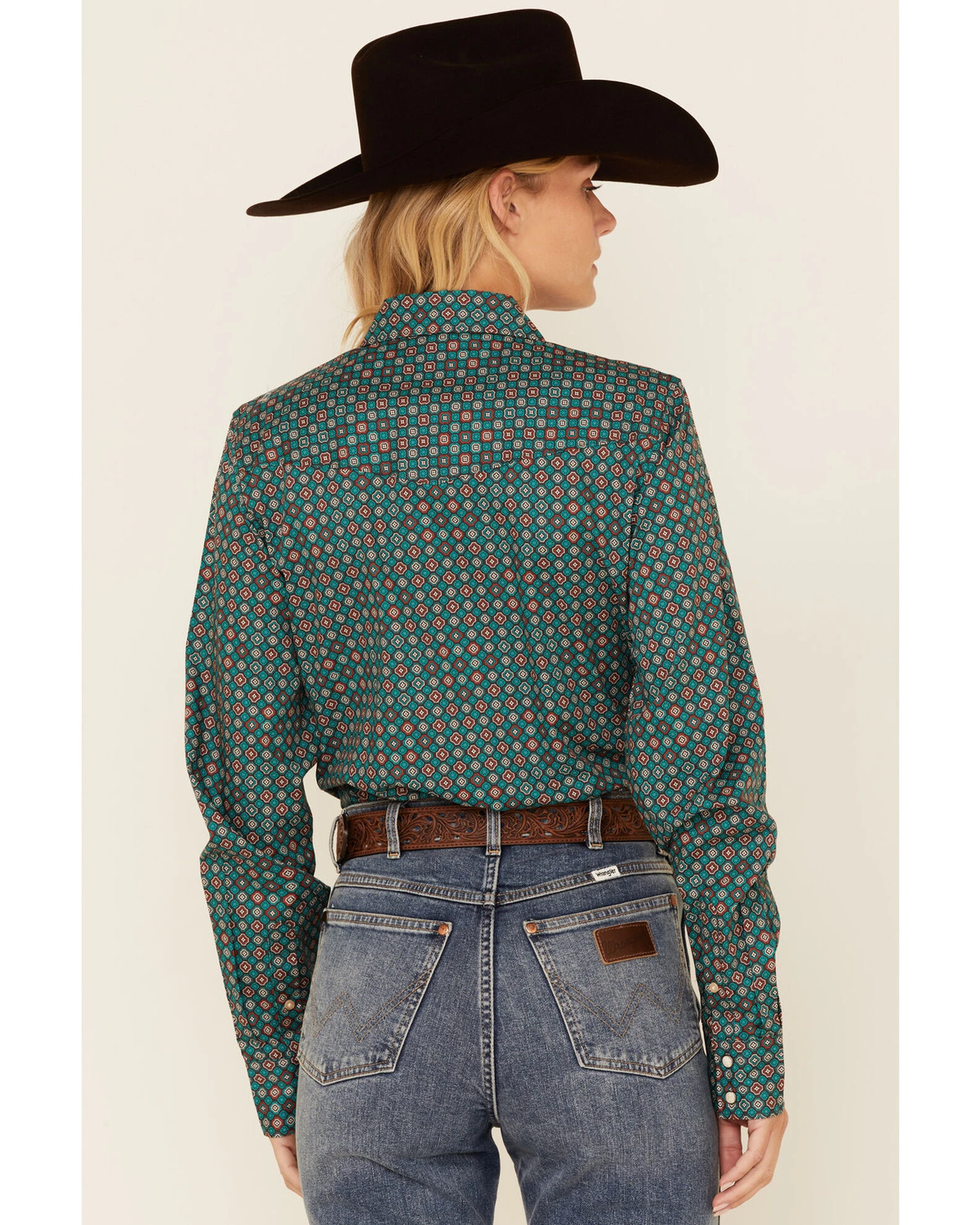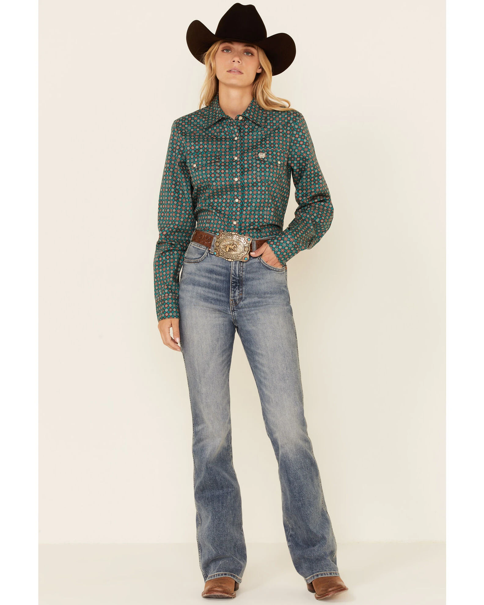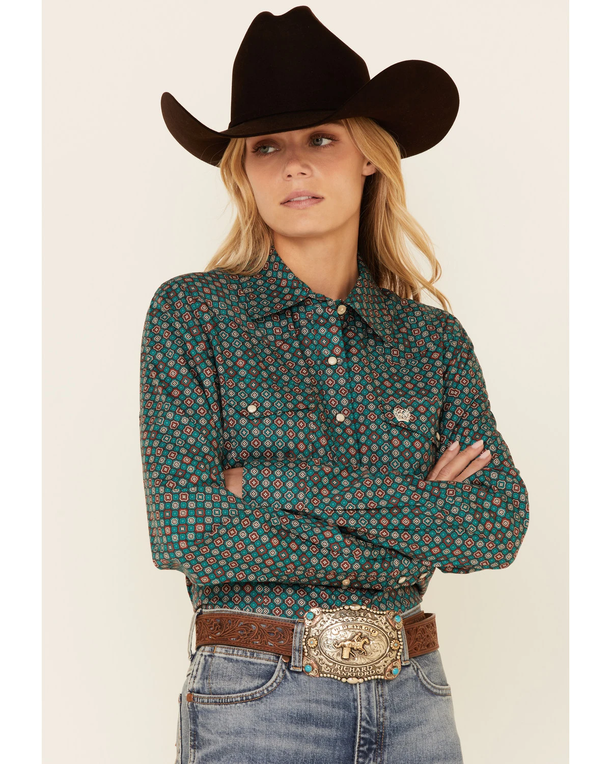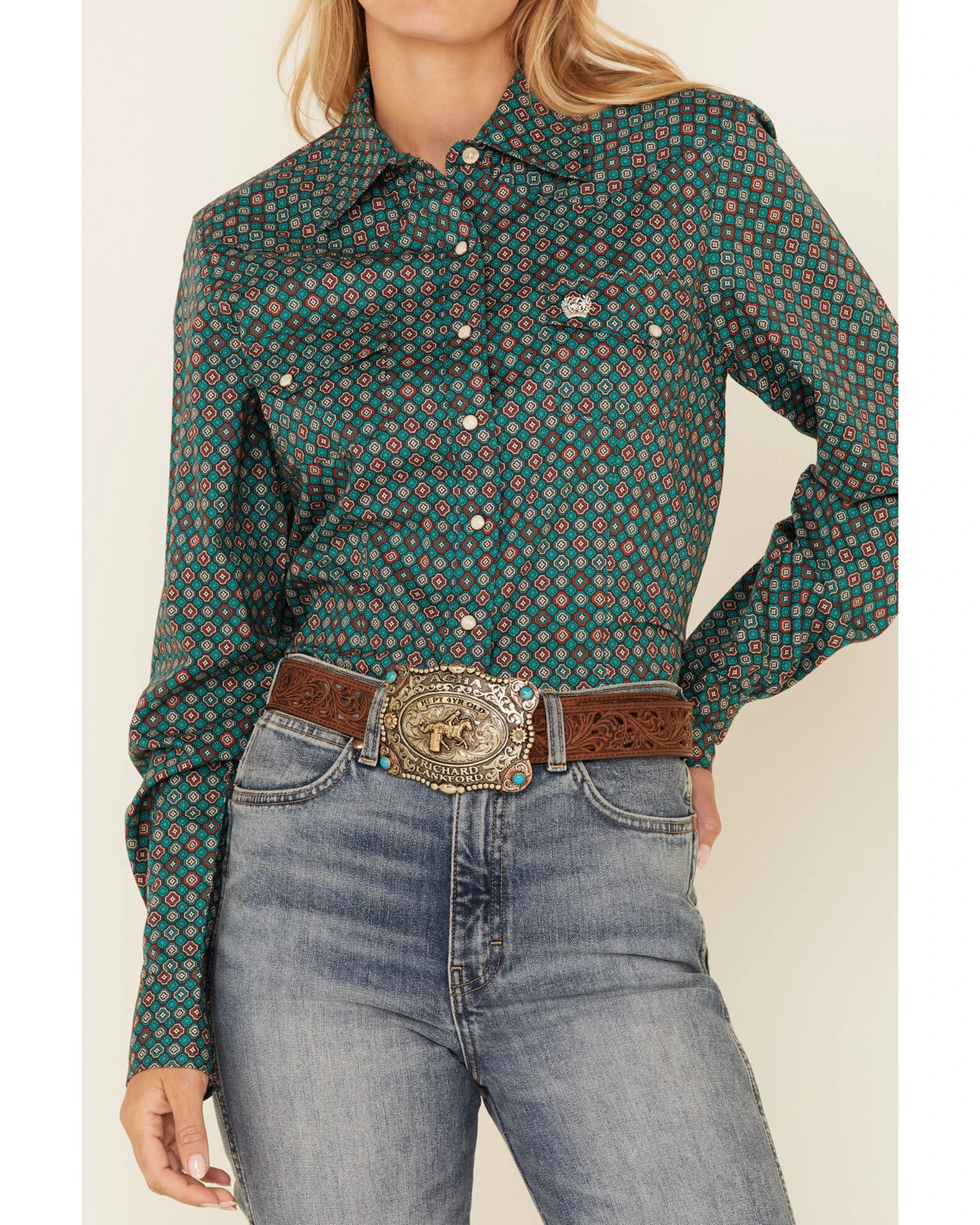 Cinch Women’s Multi Geo Print Long Sleeve Snap Western Core Shirt Purple