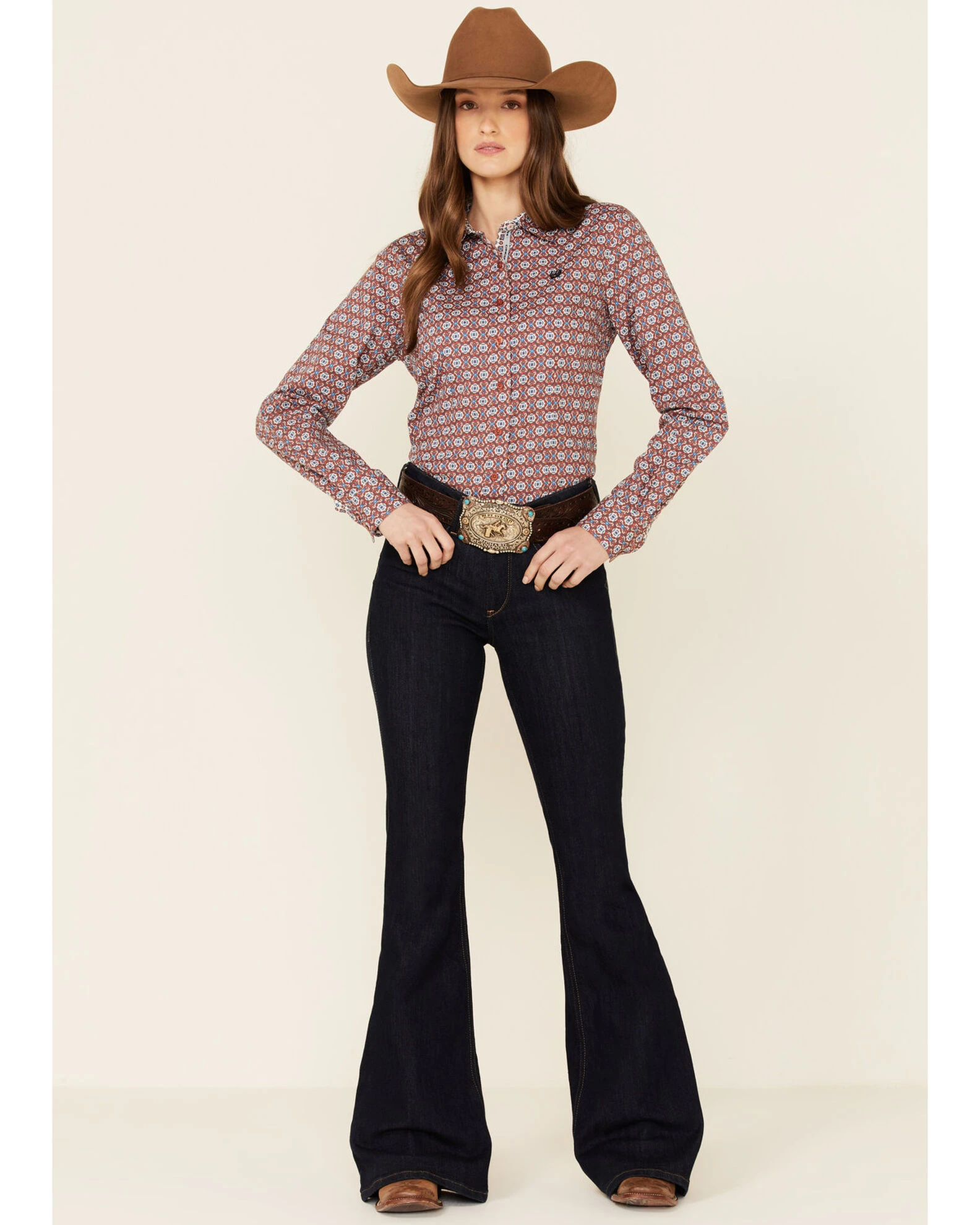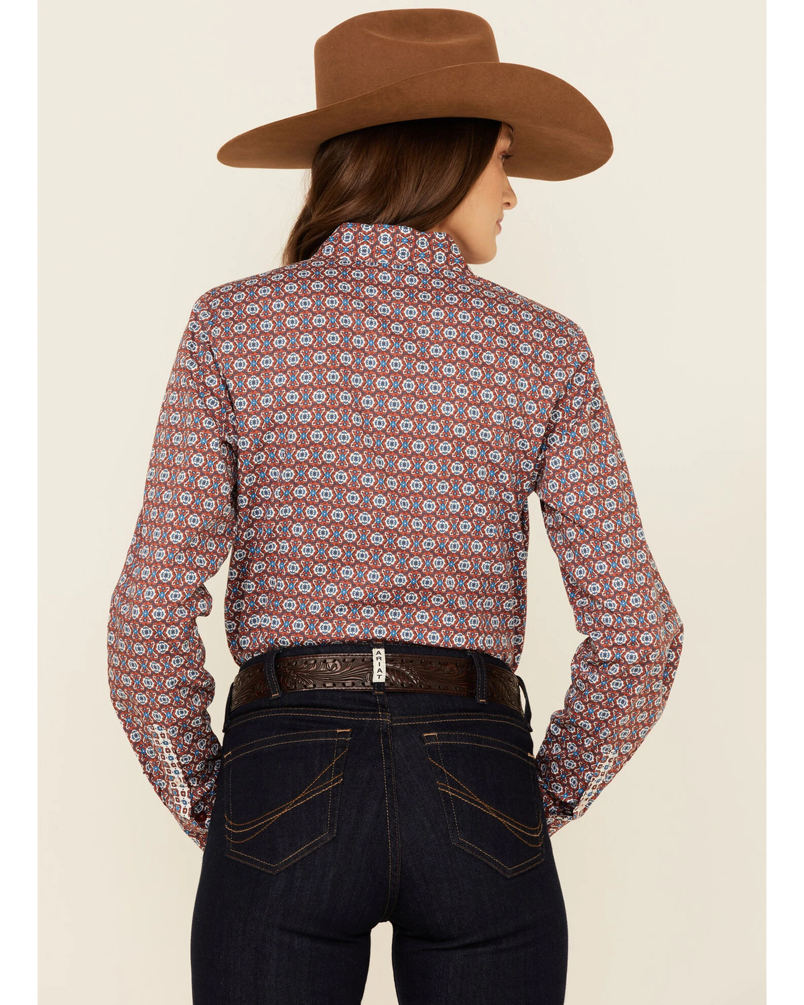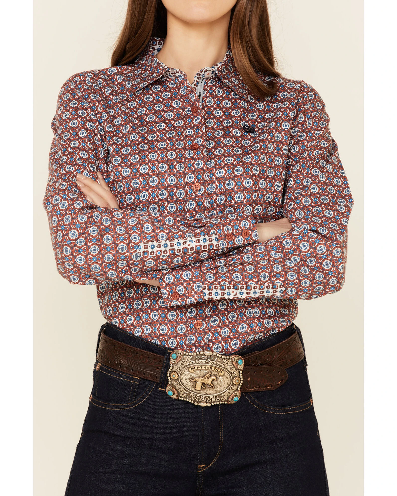 Cinch Women’s Rust & Teal Geo Print Long Sleeve Button-Down Western Core Shirt Rust Copper