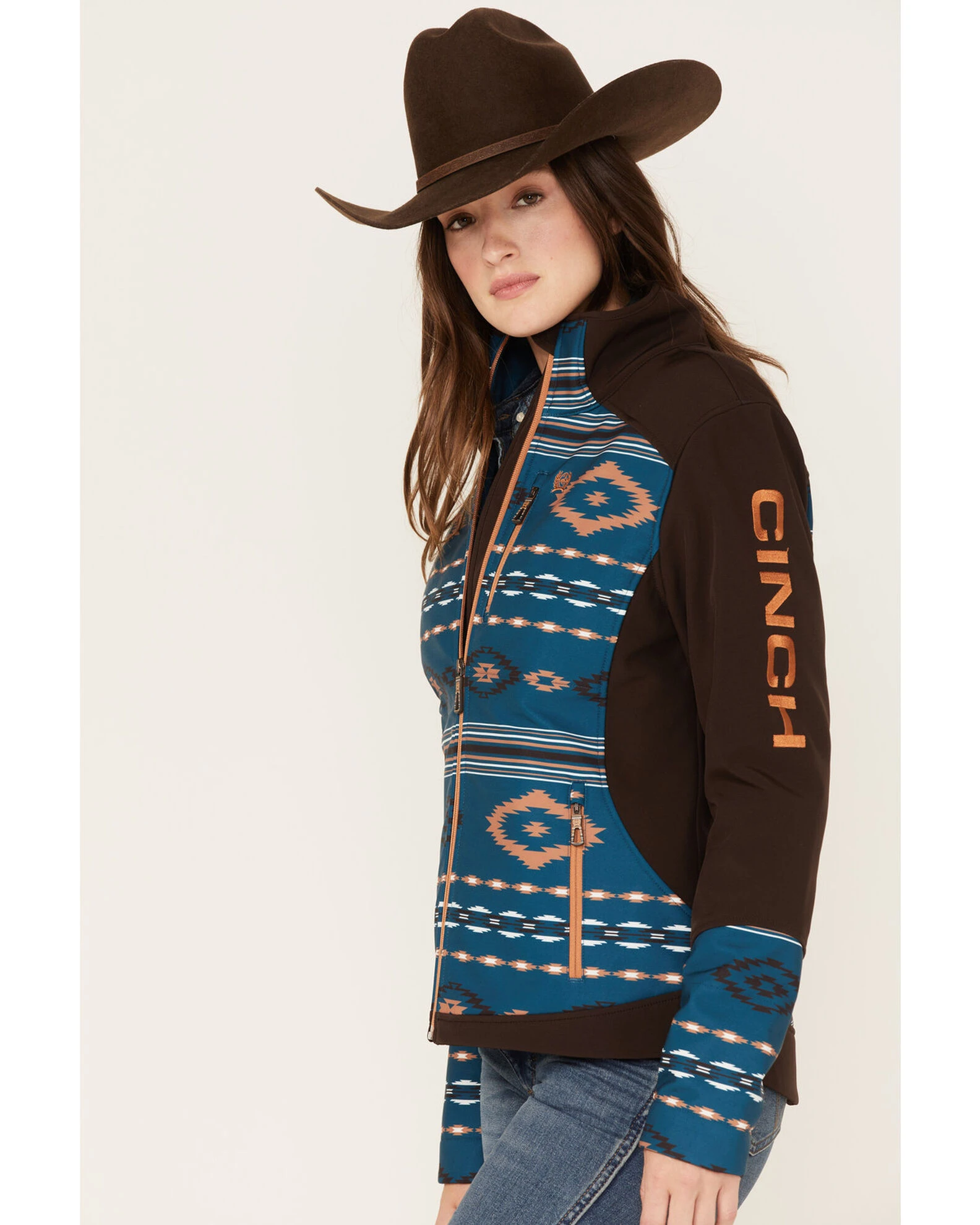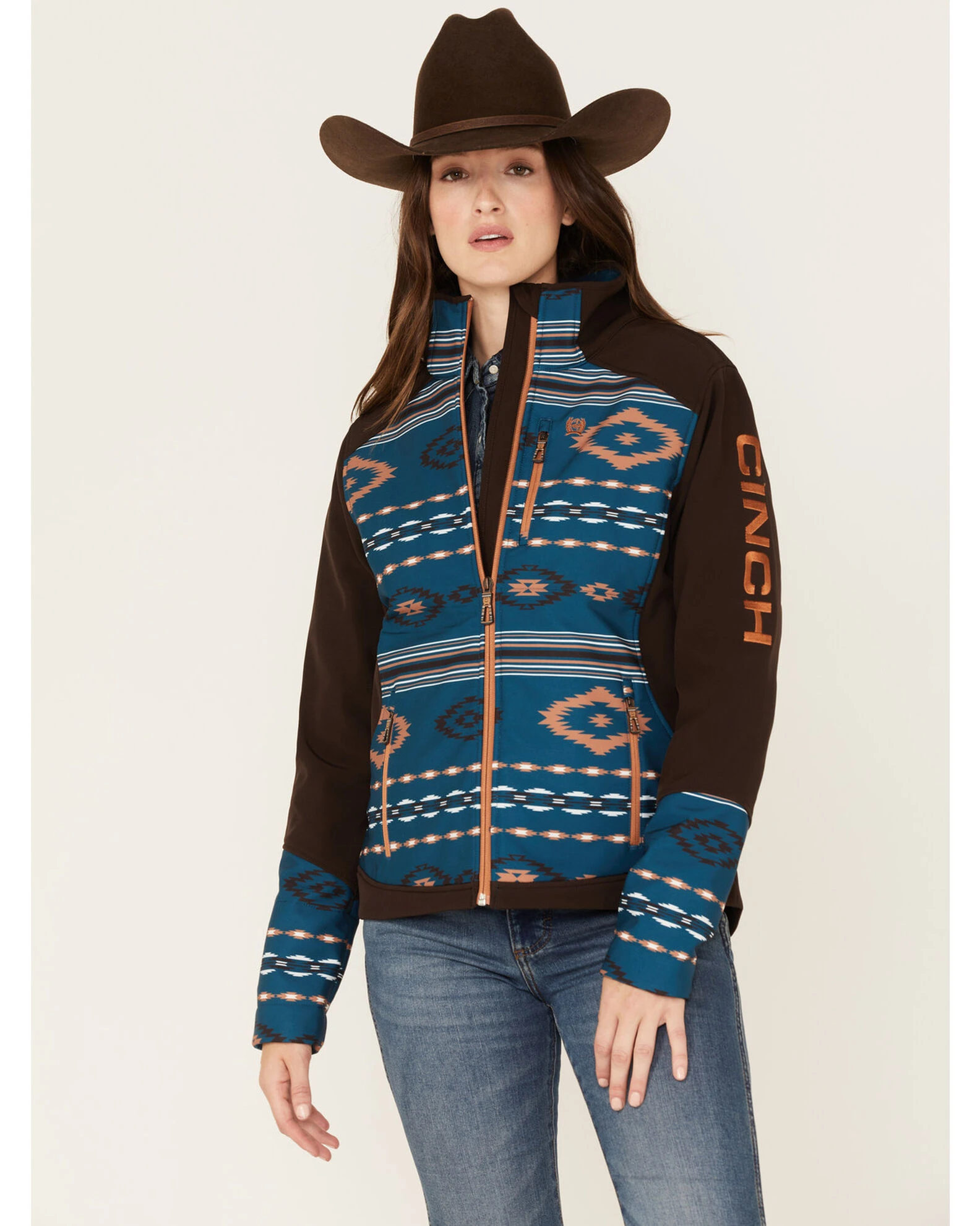 Cinch Women’s Southwestern Print Storm Defense Bonded Jacket Brown