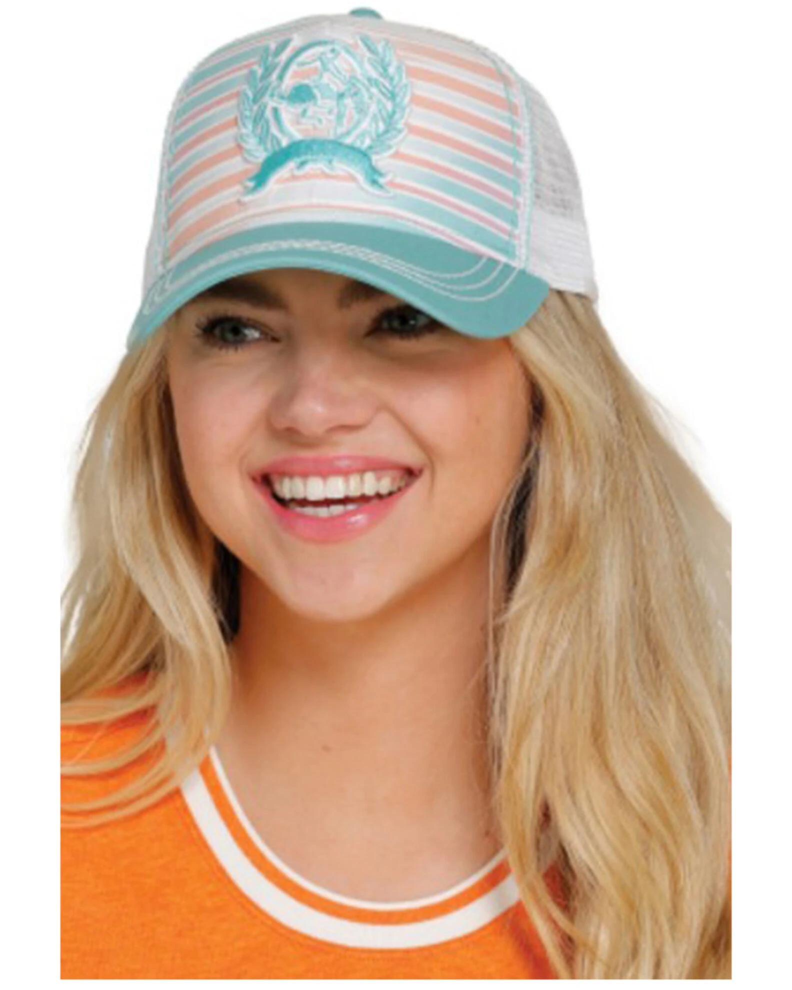 Cinch Women’s Stripe Logo Mesh Back Trucker Cap Turquoise
