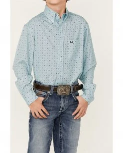 Cinch Boys’ Light Blue Diamond Geo Print ArenaFlex Long Sleeve Button-Down Western Shirt