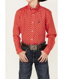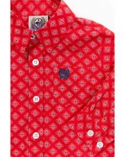 Cinch Boys’ Geo Print Long Sleeve Button-Down Shirt Red