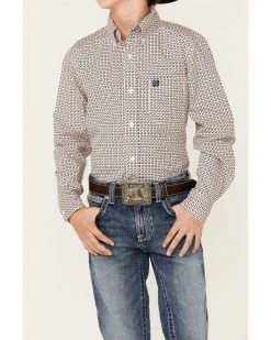 Cinch Boys’ Geo Print Long Sleeve Button-Down Western Shirt Pink