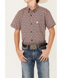 Cinch Boys’ Dotted Geo Print Long Sleeve Western Snap Shirt Burgundy