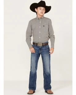 Cinch Boys’ Dotted Geo Print Long Sleeve Button-Down Shirt Multi