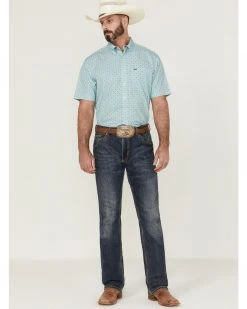 Cinch Men’s Geo Print Button Short Sleeve Western Shirt Teal