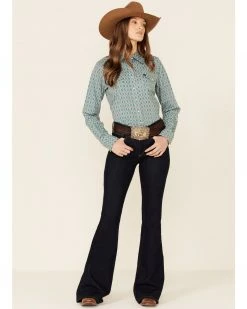 Cinch Women’s Blue & Green Circle Geo Print Long Sleeve Snap Western Core Shirt Purple