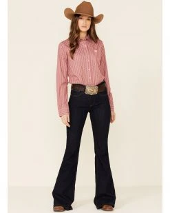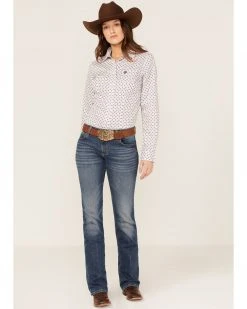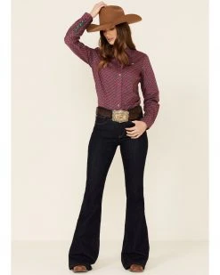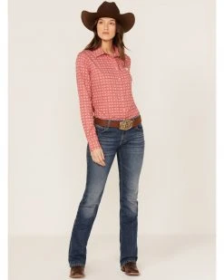 Cinch Women’s Geo Print Long Sleeve Button-Down Stretch ArenaFlex Shirt Red