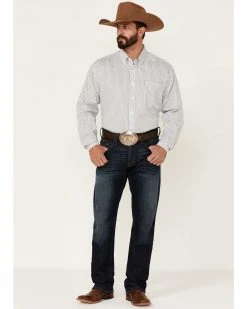 Cinch Men’s White Stretch Geo Print Long Sleeve Button-Down Western Shirt
