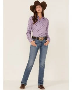 Cinch Women’s Geo Print Long Sleeve Button-Down ArenaFlex Shirt Light Purple