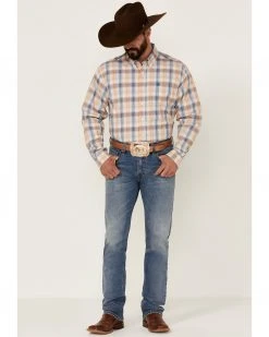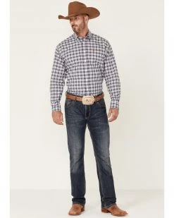 Cinch Men’s White Small Plaid Long Sleeve Button-Down Western Shirt – Big