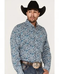 Cinch Men’s Large Paisley Print Long Sleeve Button-Down Western Shirt White
