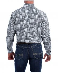 Cinch Men’s Modern Fit White Geo Print Long Sleeve Button-Down Western Shirt