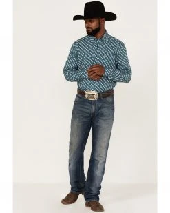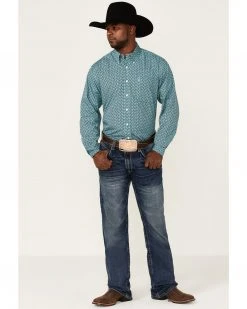 Cinch Men’s Modern Fit Turquiose Geo Print Long Sleeve Button-Down Western Shirt Turquoise