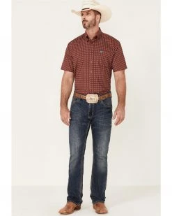Cinch Men’s Red Geo Print Short Sleeve Button-Down Western Shirt